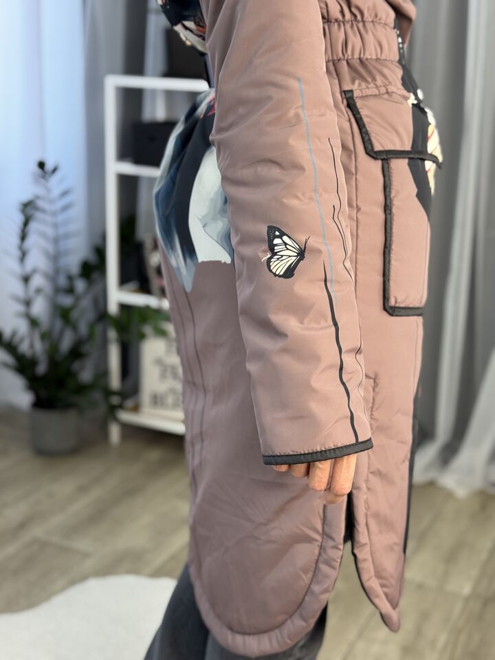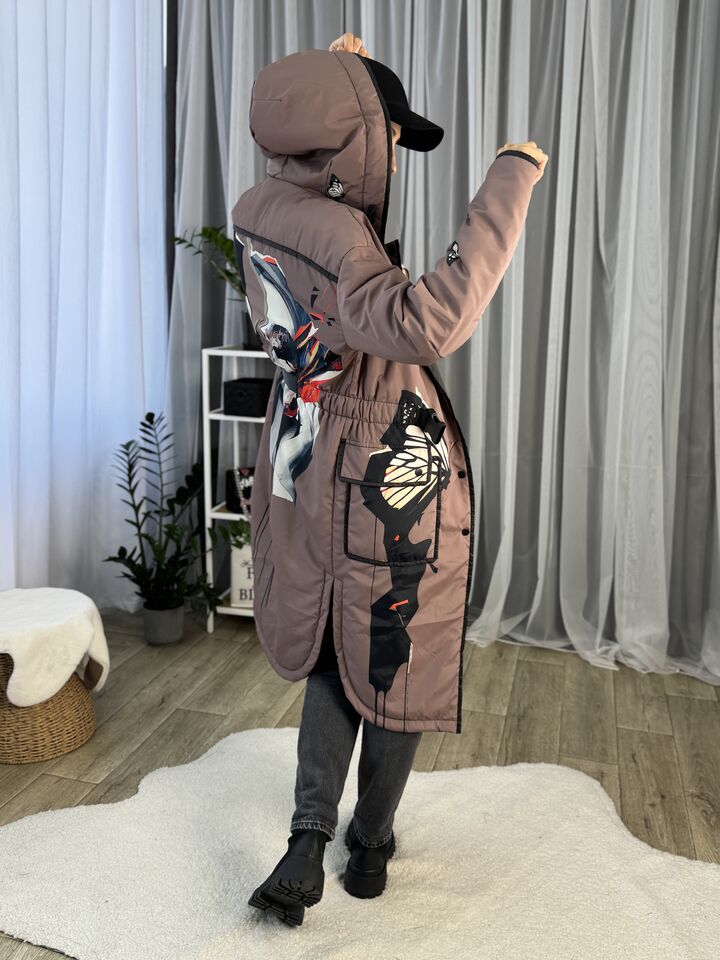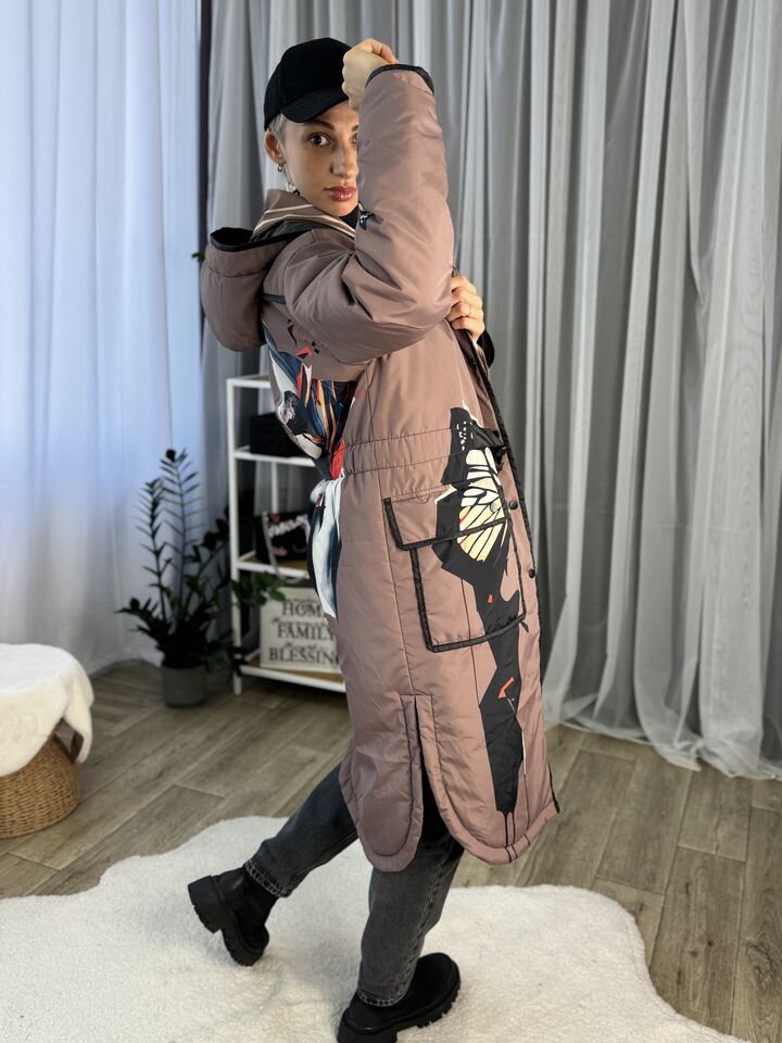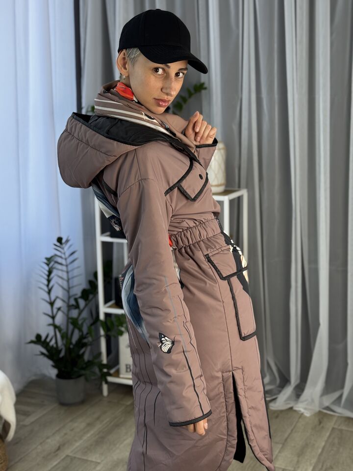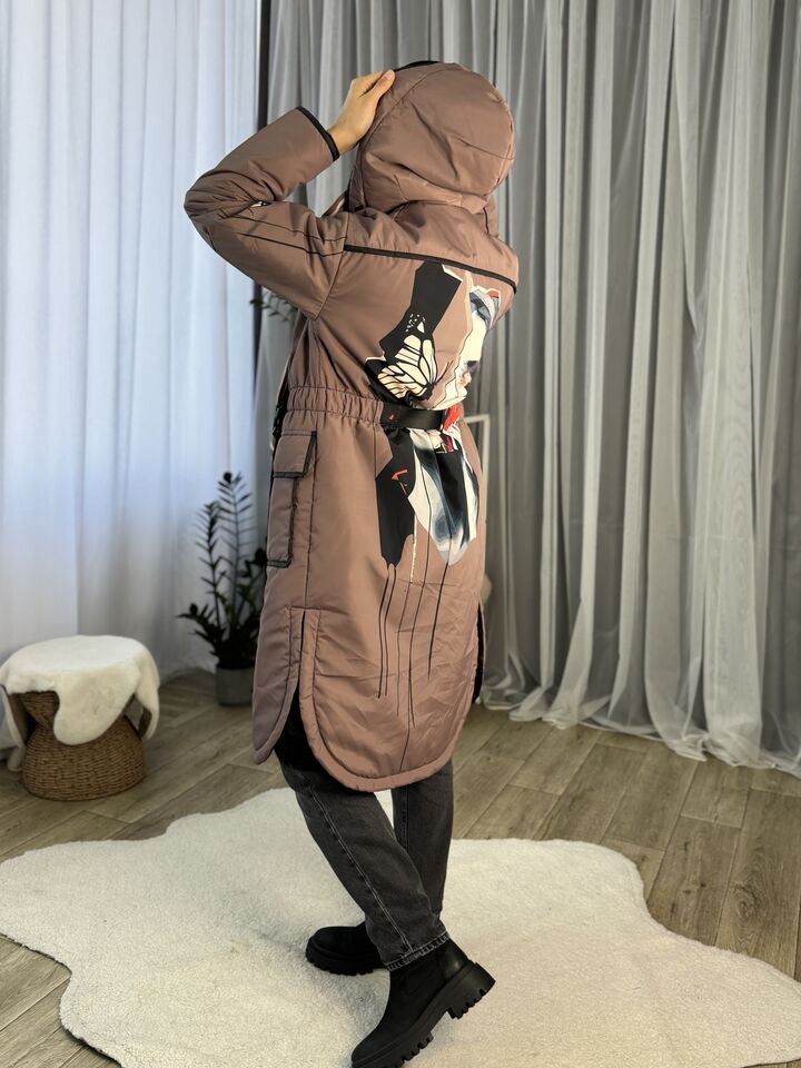 • Матеріал: плащівка • Сезон: весна/осінь (комфорт до +5°C) • Утеплювач: слімтекс 100 г/м² • Капюшон: вшитий • Рукава: спущенний плечовий шов • Довжина: 114 см • Догляд: прання 30°