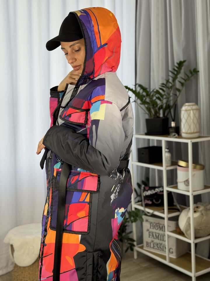 • Матеріал: плащівка • Сезон: весна/осінь (комфорт до +5°C) • Утеплювач: слімтекс 100 г/м² • Капюшон: вшитий • Рукава: спущенний плечовий шов • Довжина: 114 см • Догляд: прання 30°