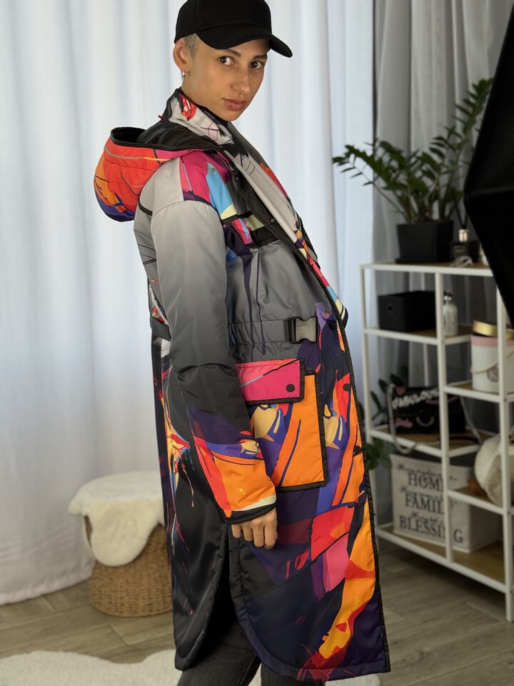 Легкий демісезонний плащ із капюшоном Barva Lab — це поєднання практичності, комфорту та авторського стилю. Полгяди затримуються – настрій підімається. Огорни себе яскравими барвами та затишком у сірі осінні будні! Дощ чи вітер тепер не буде Вас засмучувати!