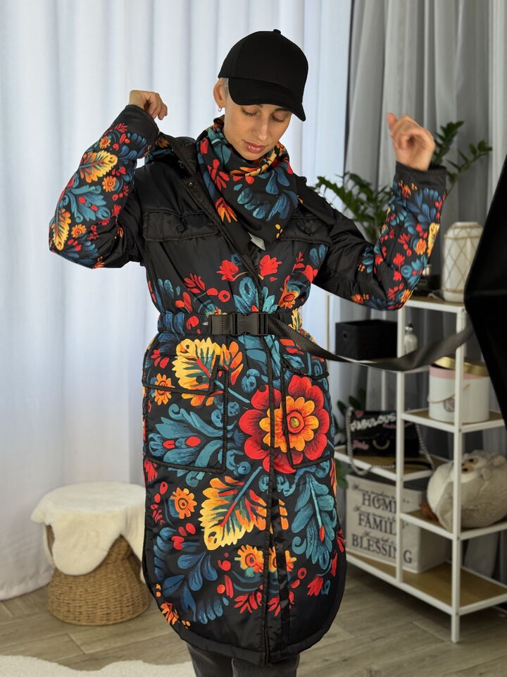 • Матеріал: плащівка • Сезон: весна/осінь (комфорт до +5°C) • Утеплювач: слімтекс 100 г/м² • Капюшон: вшитий • Рукава: спущенний плечовий шов • Довжина: 114 см • Догляд: прання 30°