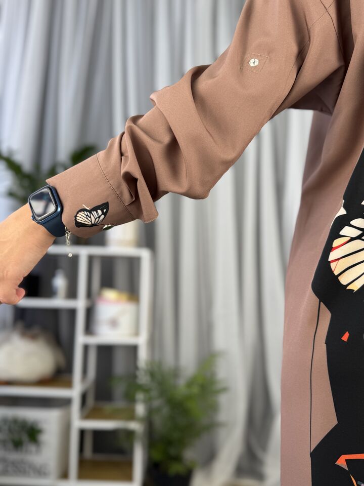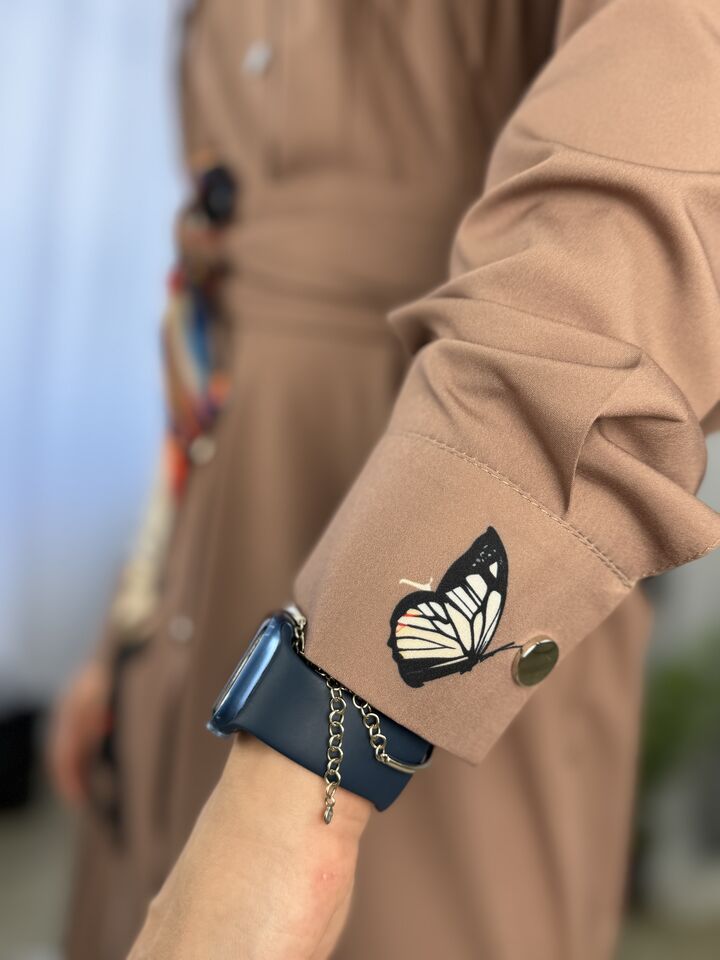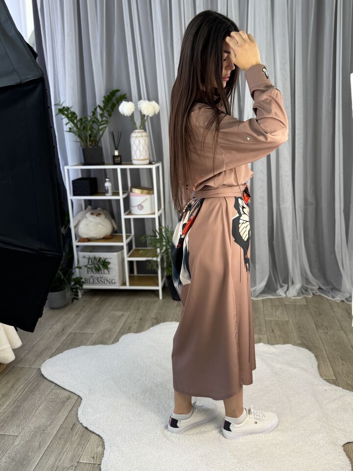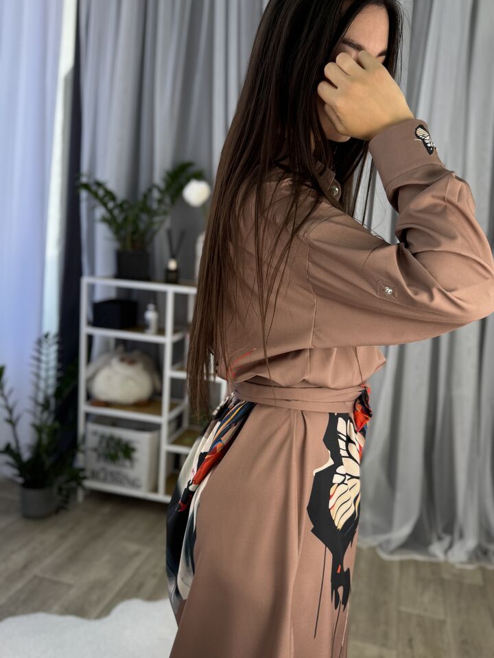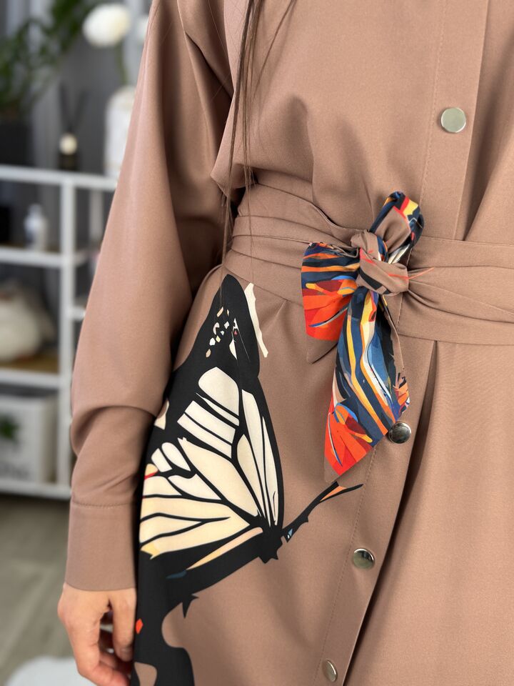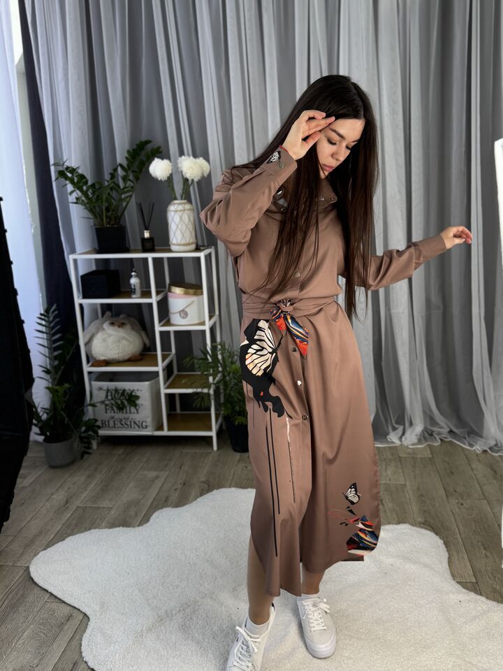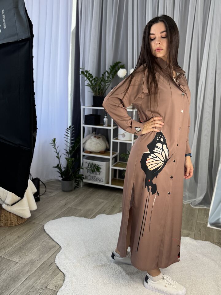 Сукня – сорочка, довга із поясом, коричнева із метеликами