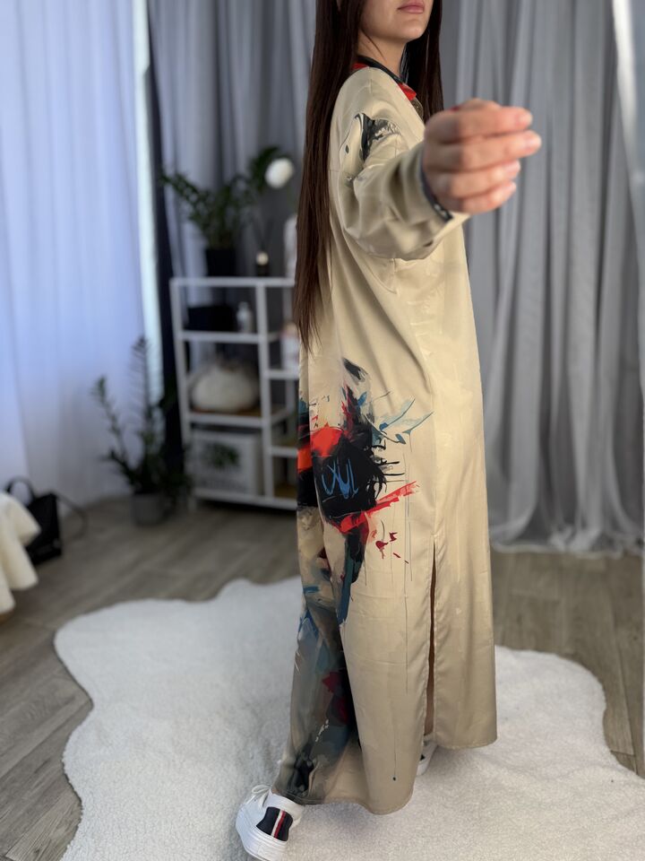 Матеріал м’який, дихаючий, невагомий і дуже приємний до тіла. Ідеальний варіант для спекотної погоди або особливих подій, коли хочеться виглядати легко й елегантно.