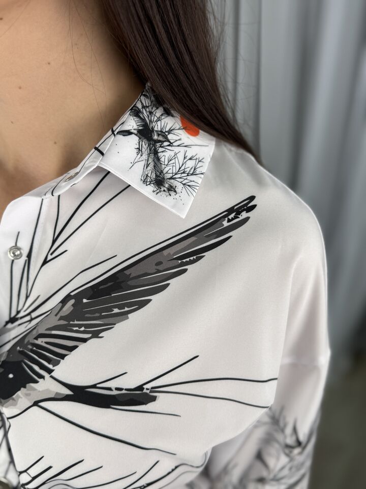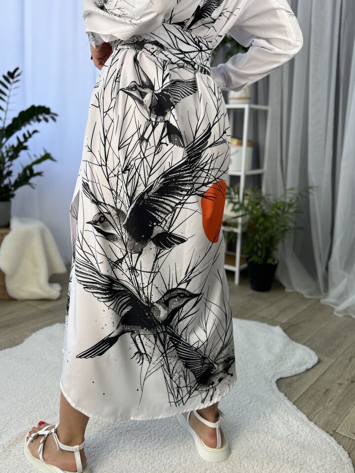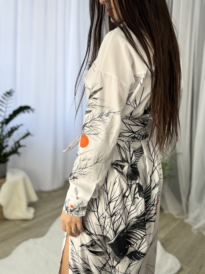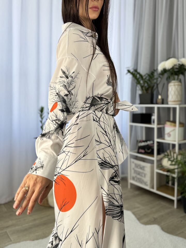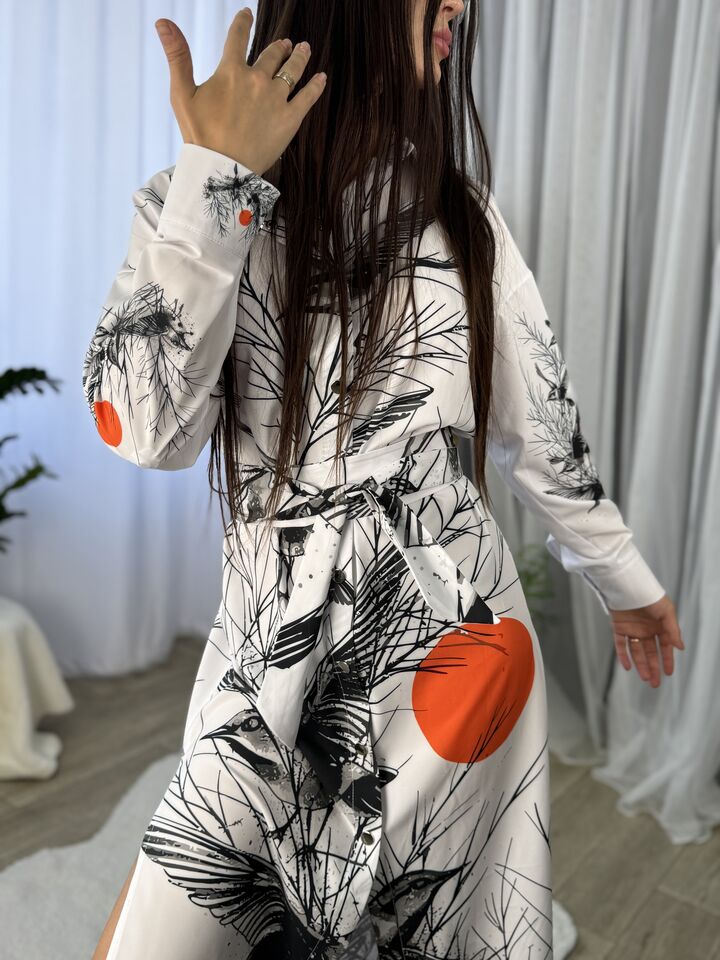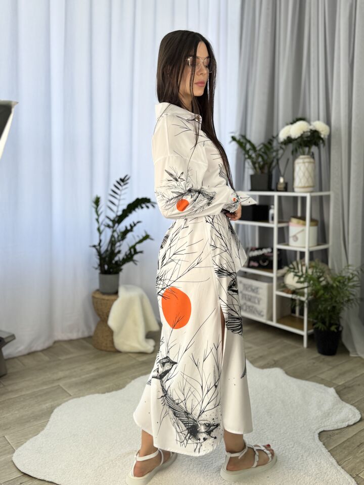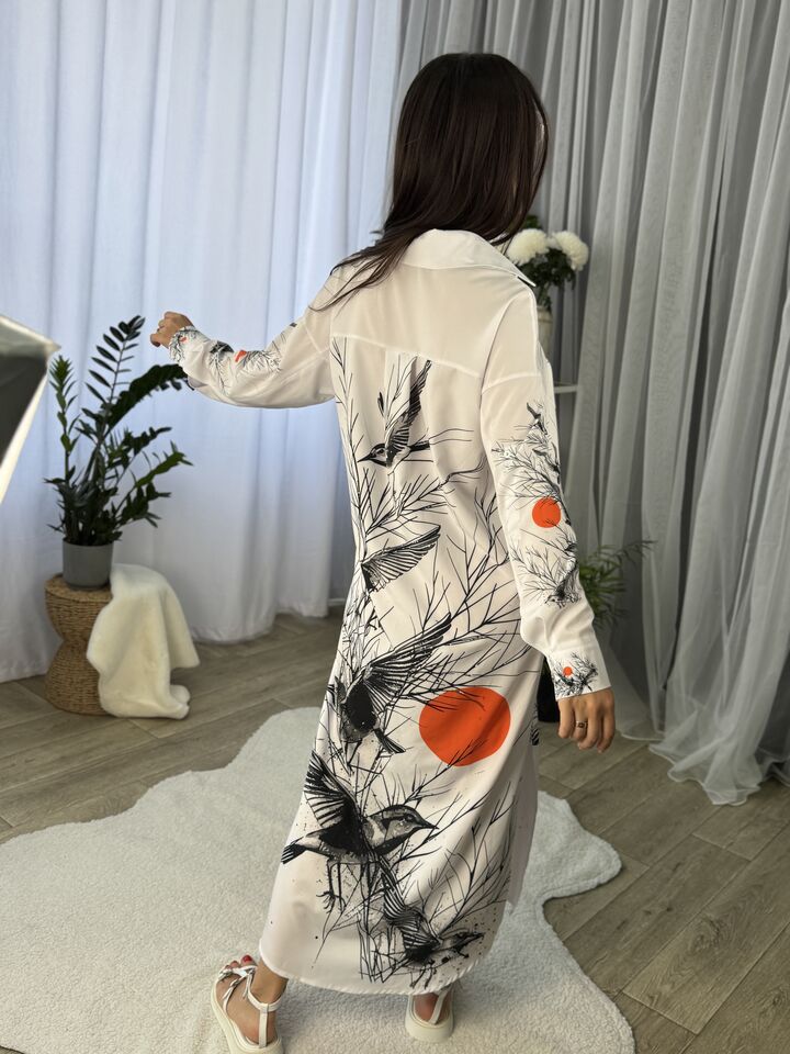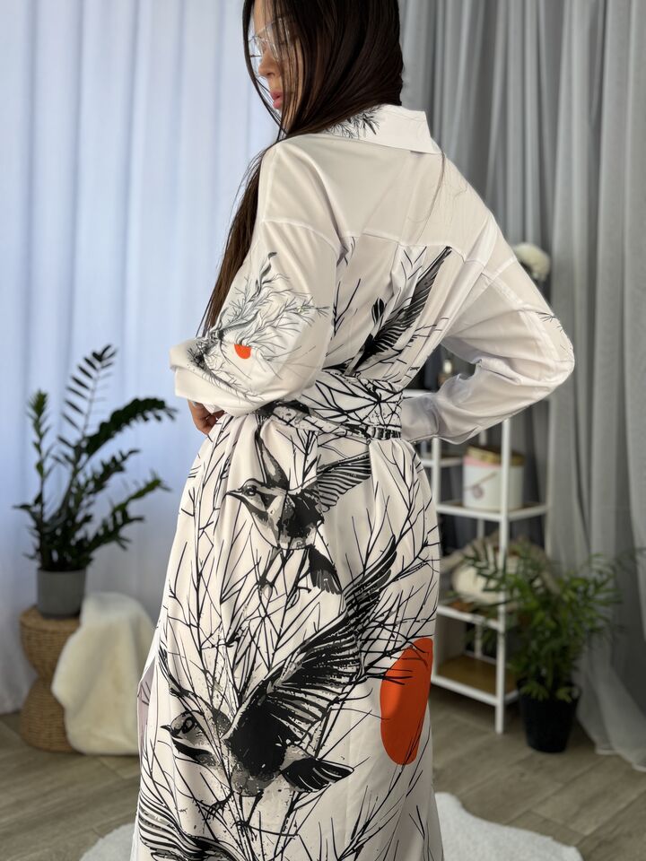 Сукня – сорочка, довга із поясом, біла із пташками