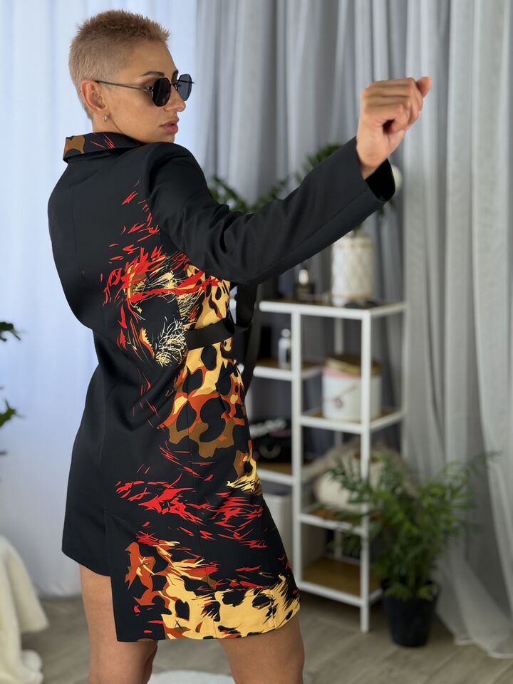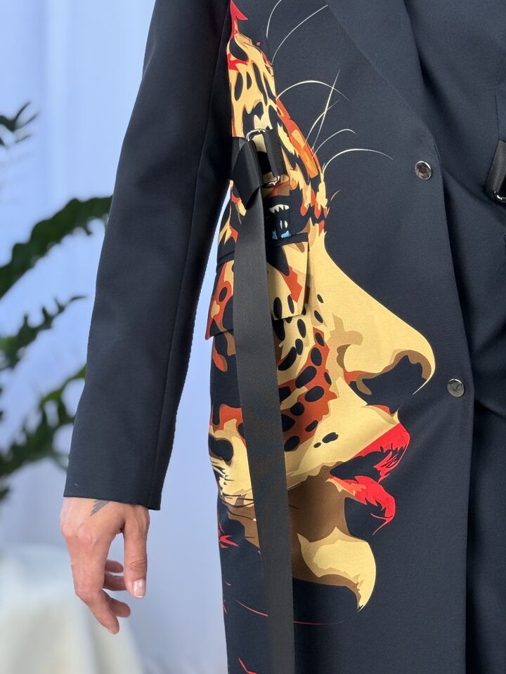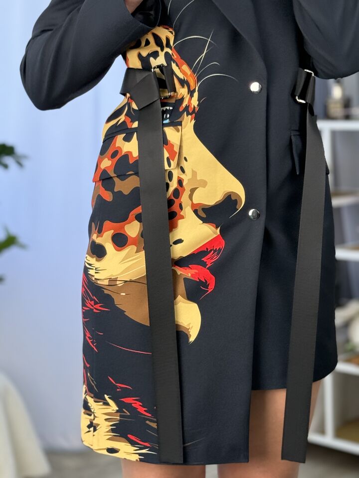 Жіноча сукня-жакет, приталена, чорна с леопардовим принтом
