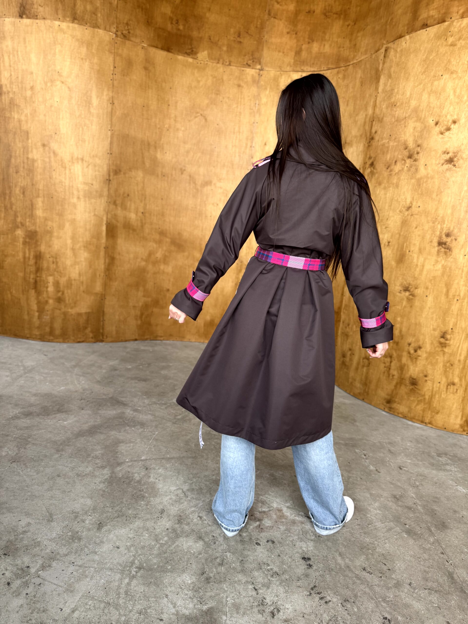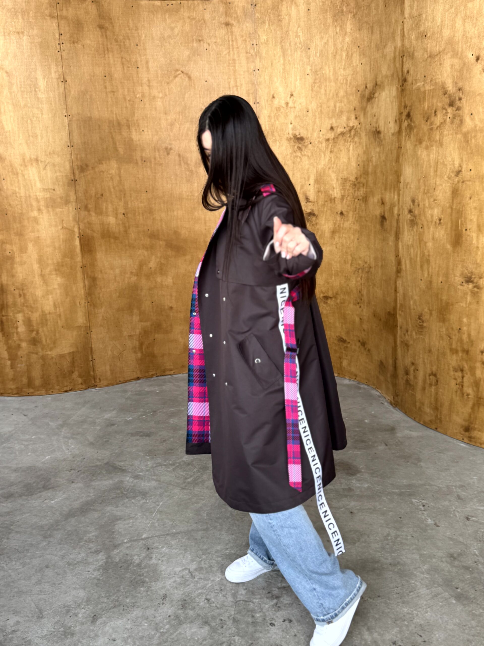 Вільний довгий тренч з рукавами реглан та поясом. Базовий колір із вставками авторського принту створюють неповторний, трендовий образ. Довжина 105-110 см в залежності від розміру. Довжина рукава 65 см.