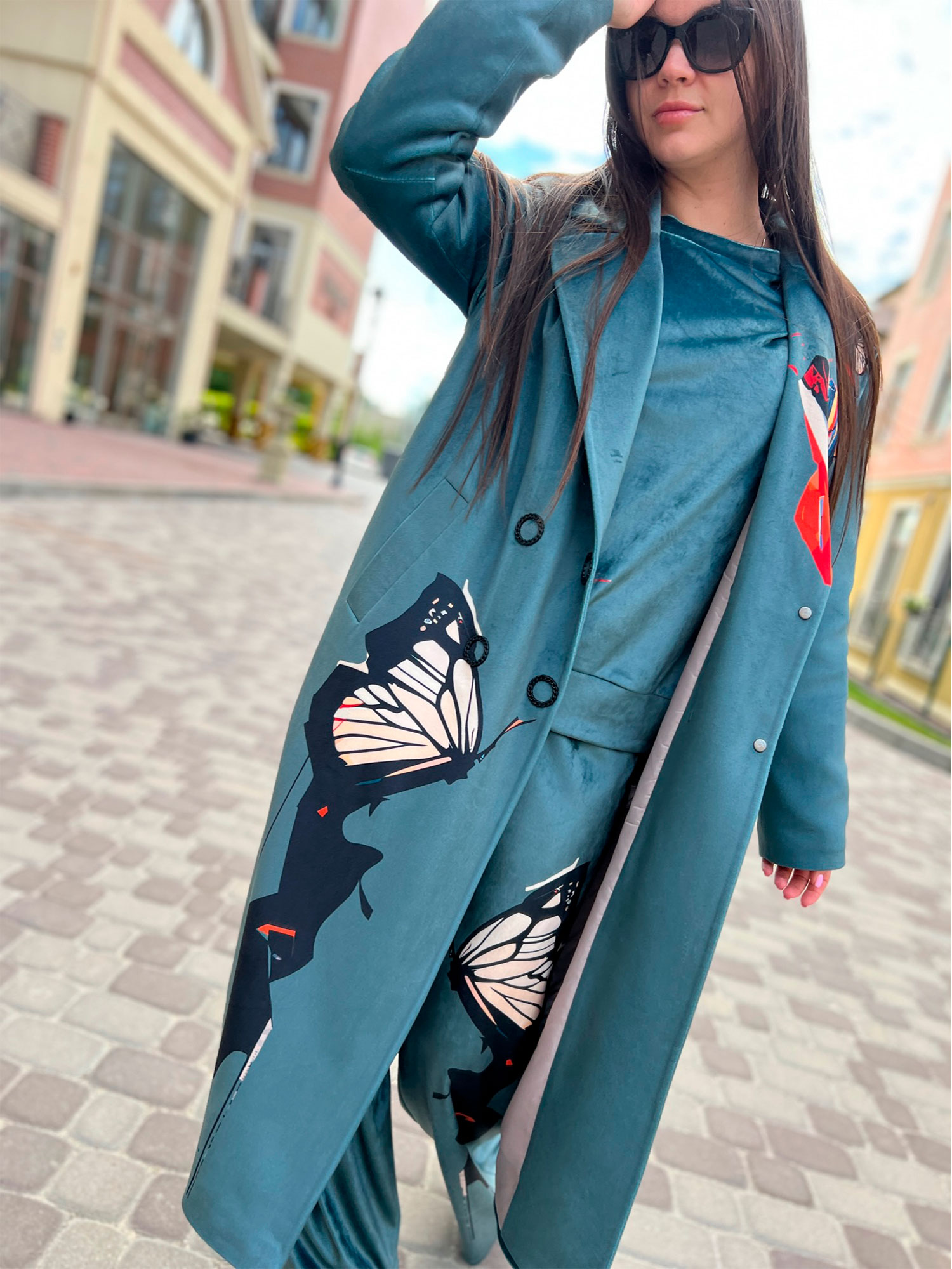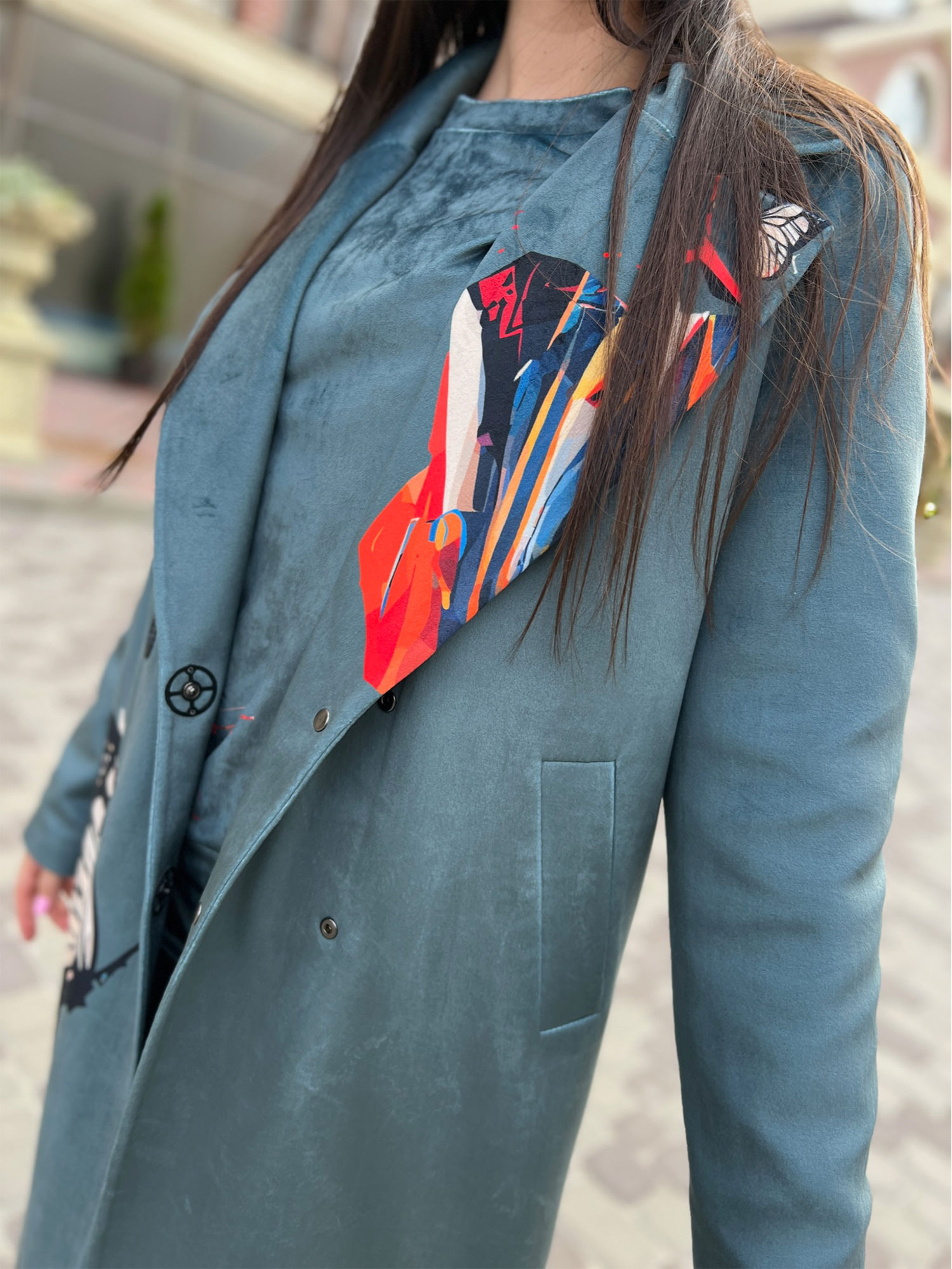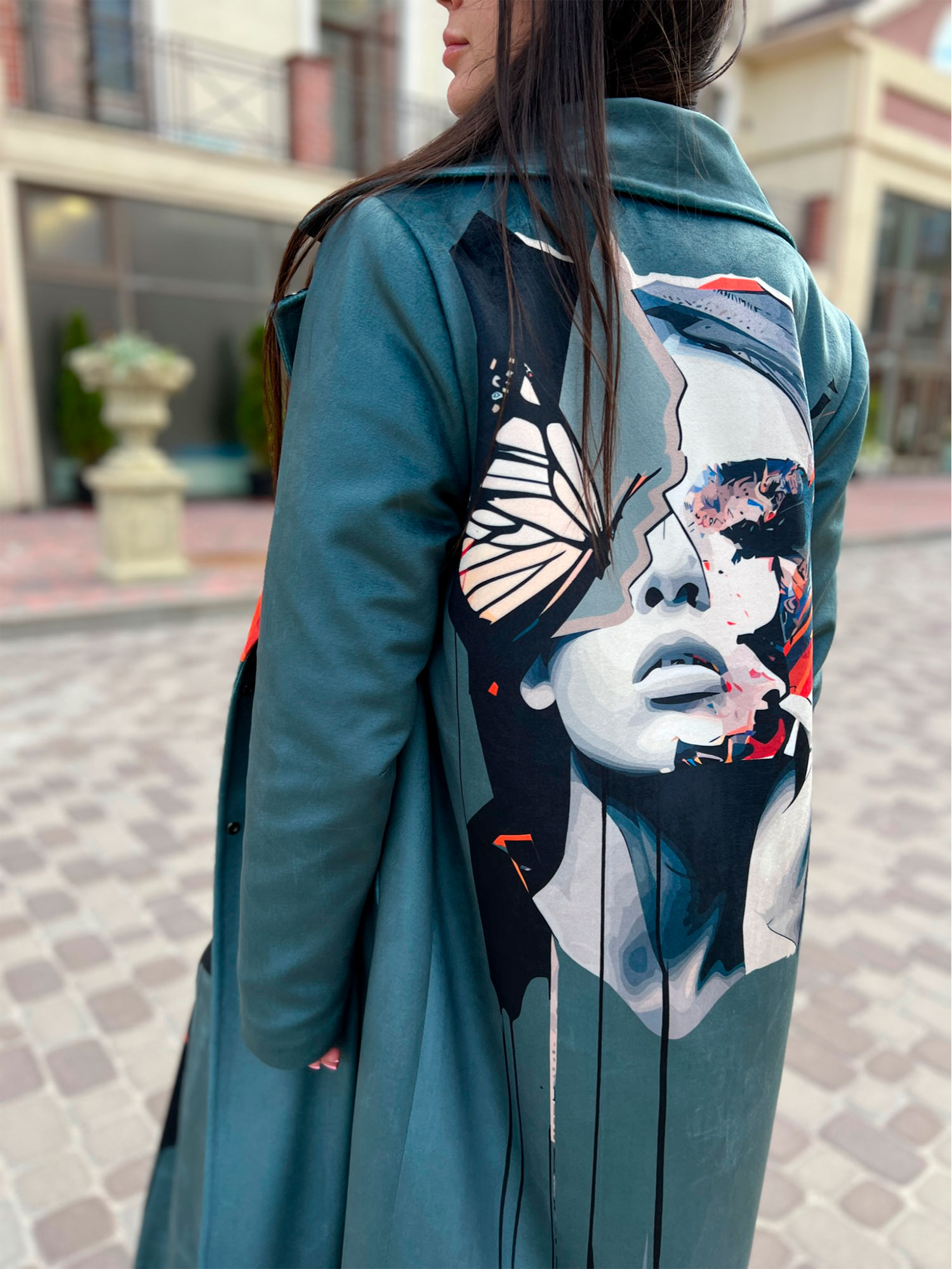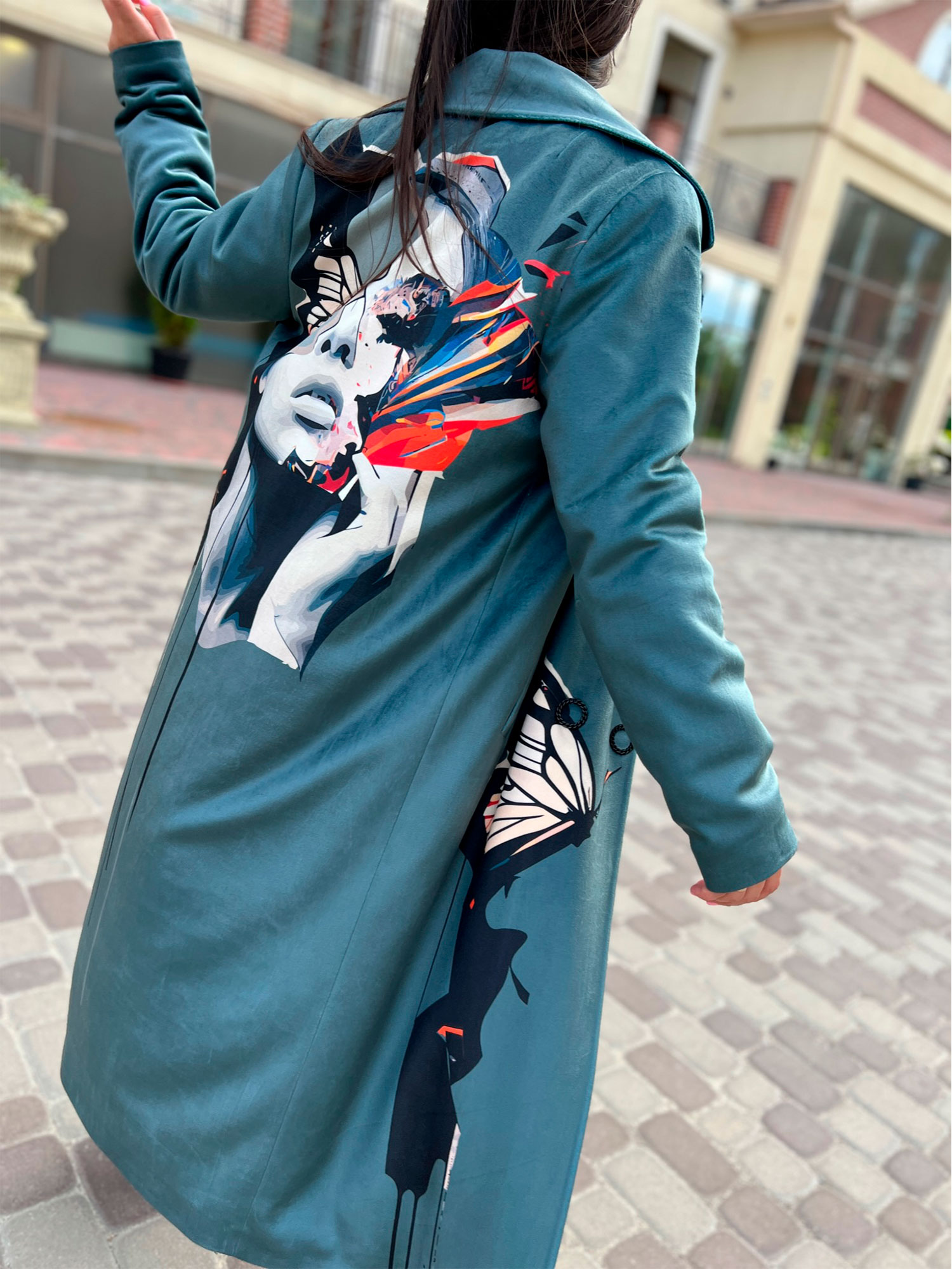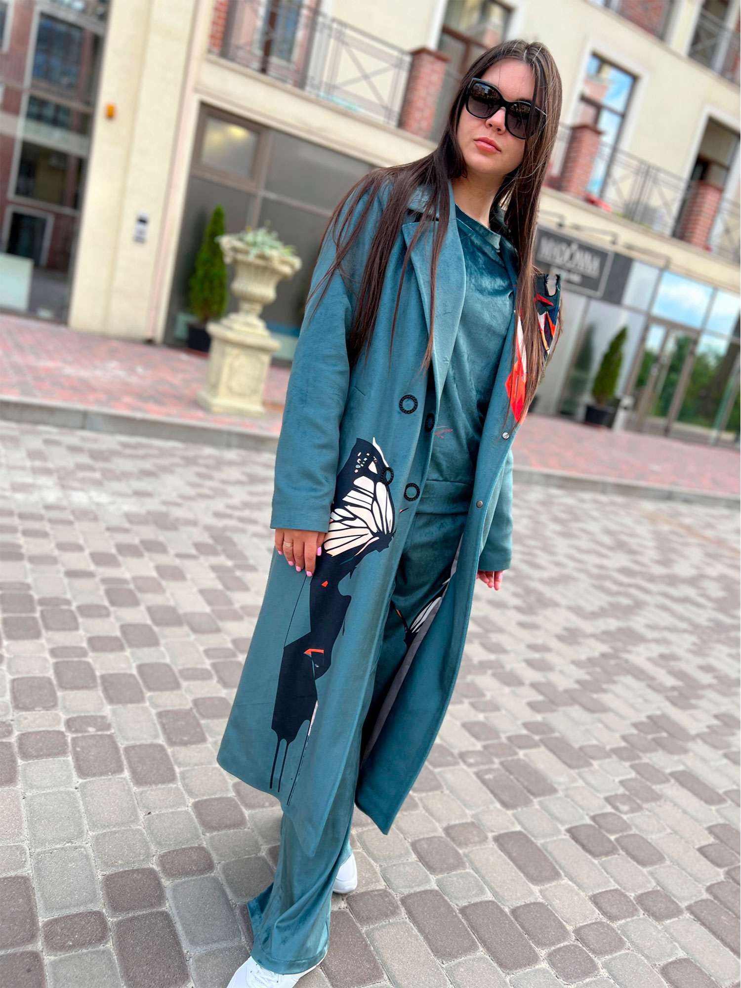 Велюрове пальто Артикул VO-44, принт № 129 зелений