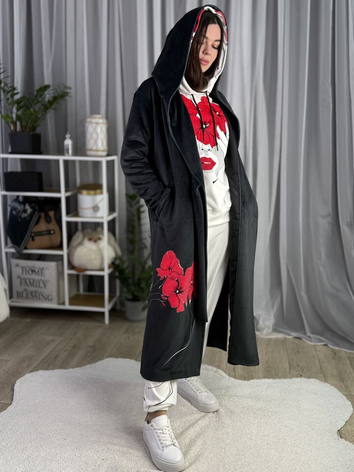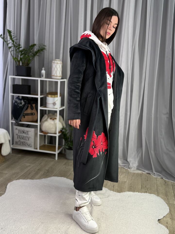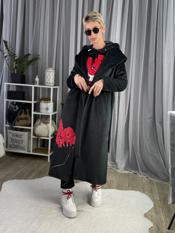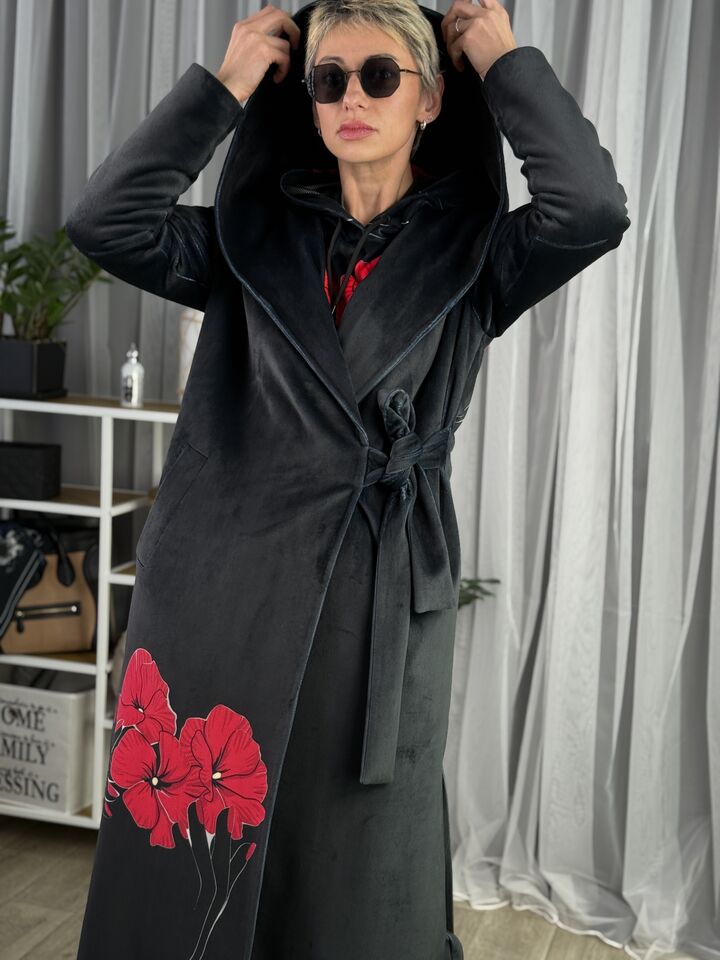 Велюрове пальто з капюшоном