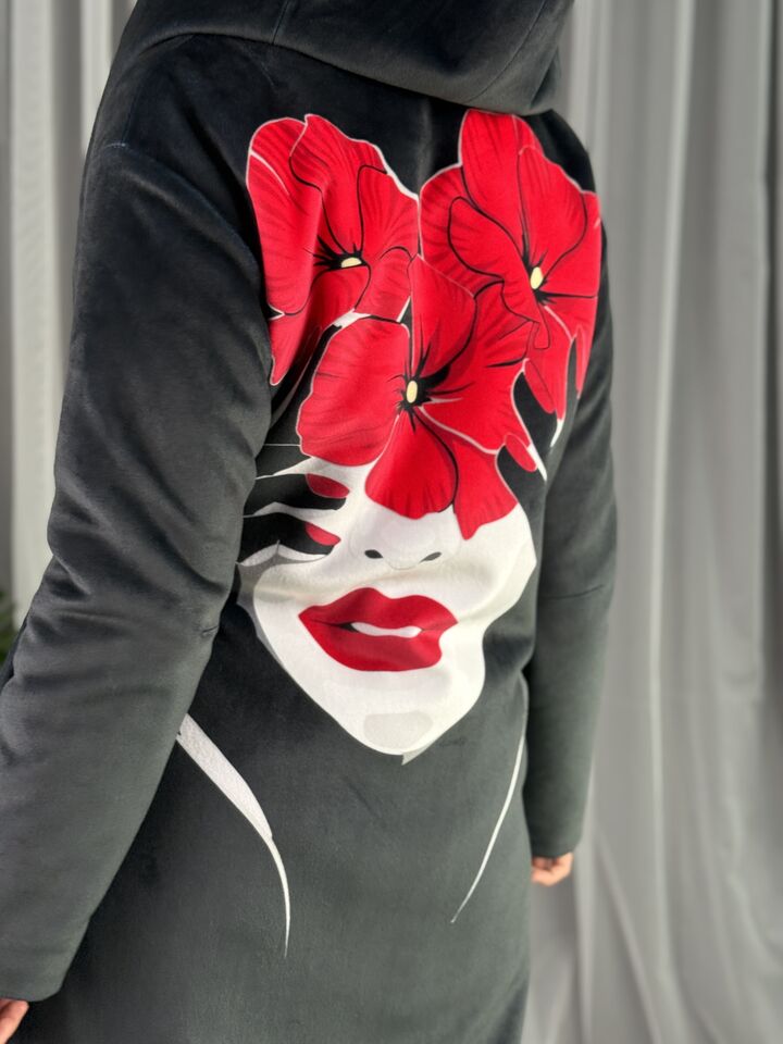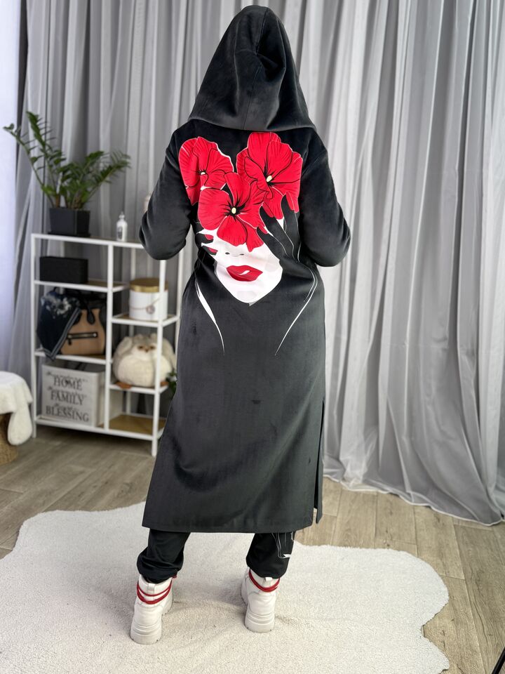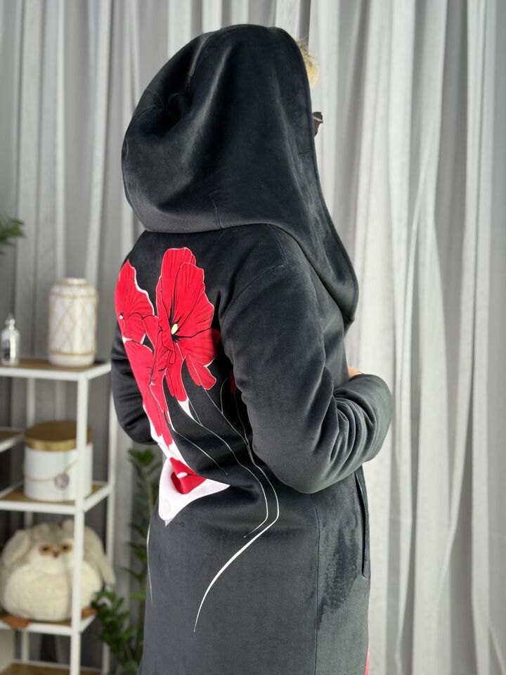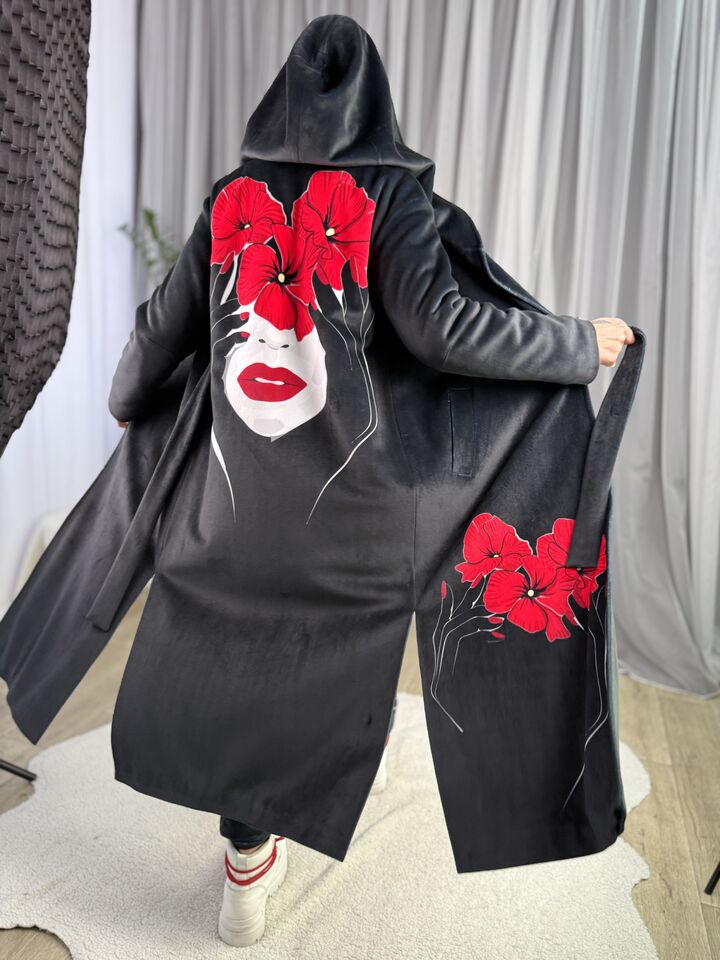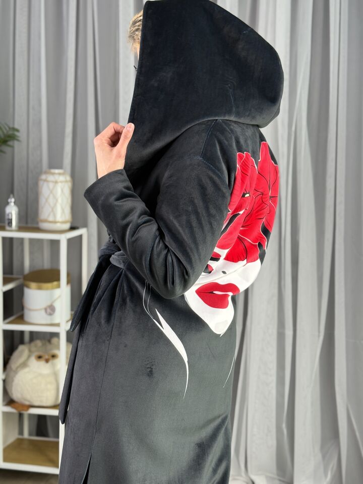 Велюрове пальто з капюшоном