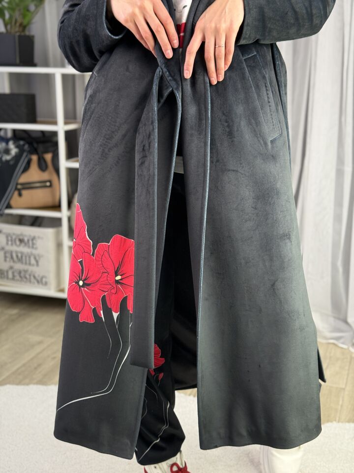 Це пальто — твоя база на міжсезоння: стриманий крій, теплий велюр і авторський акцент. Створене, щоб носити з насолодою