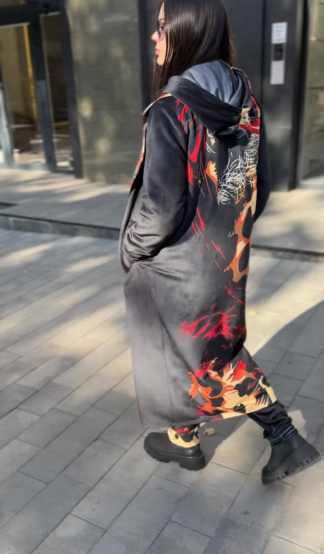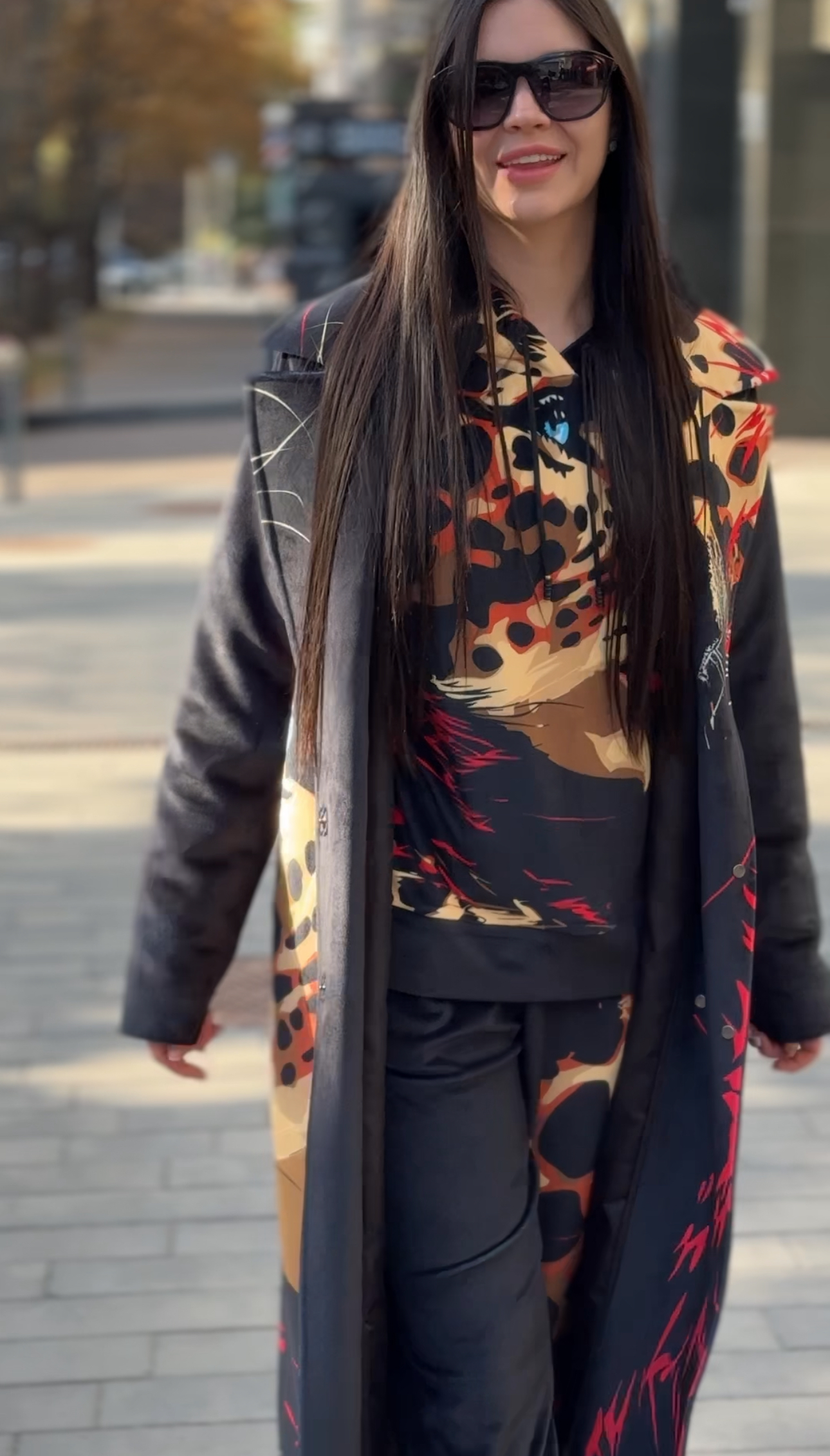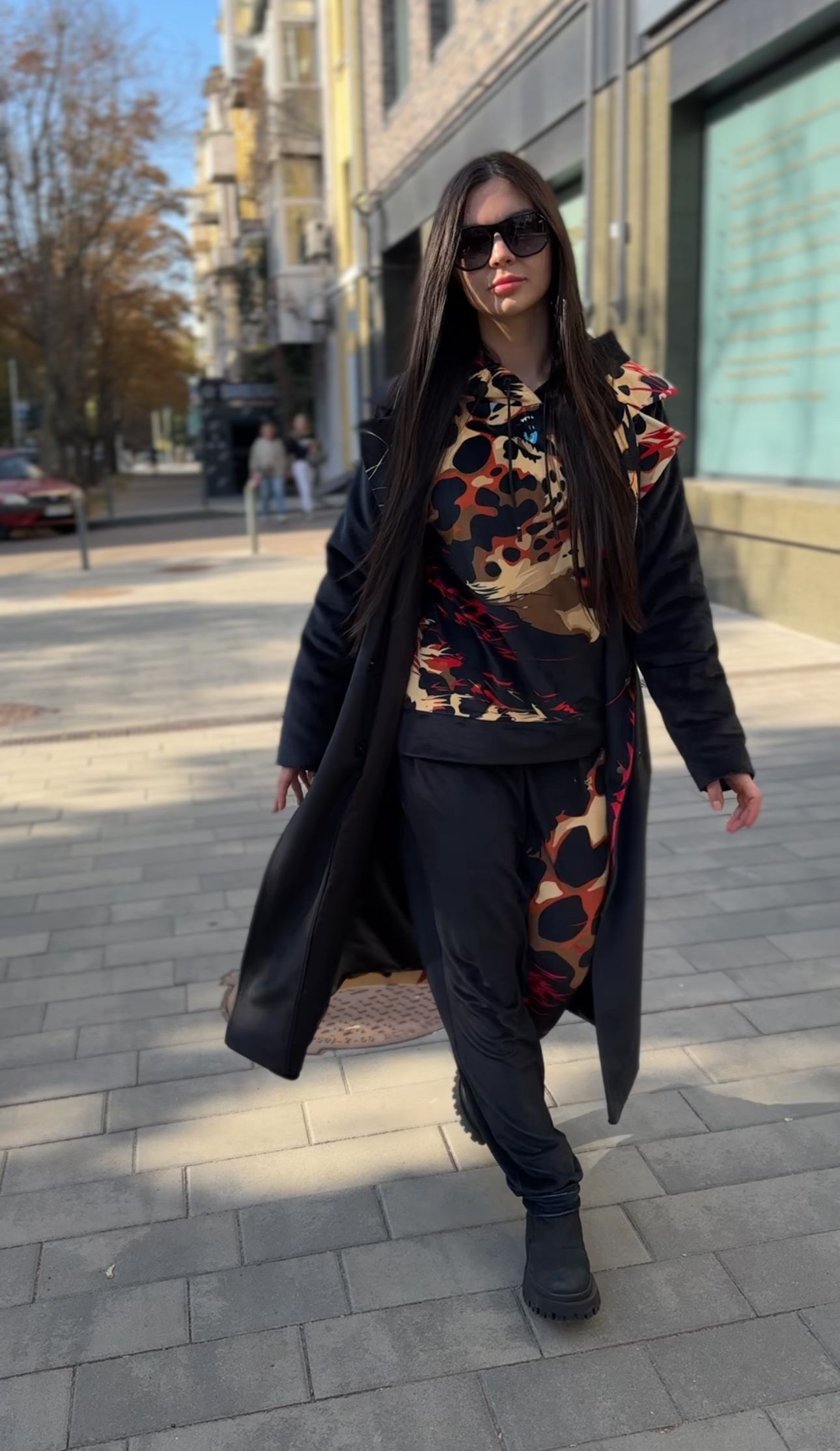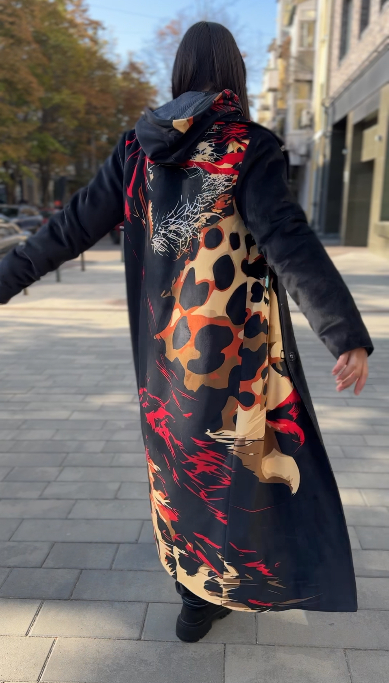 Жіноче велюрове пальто весна/осінь, Артикул VO-44, чорне з леопардовим принтом