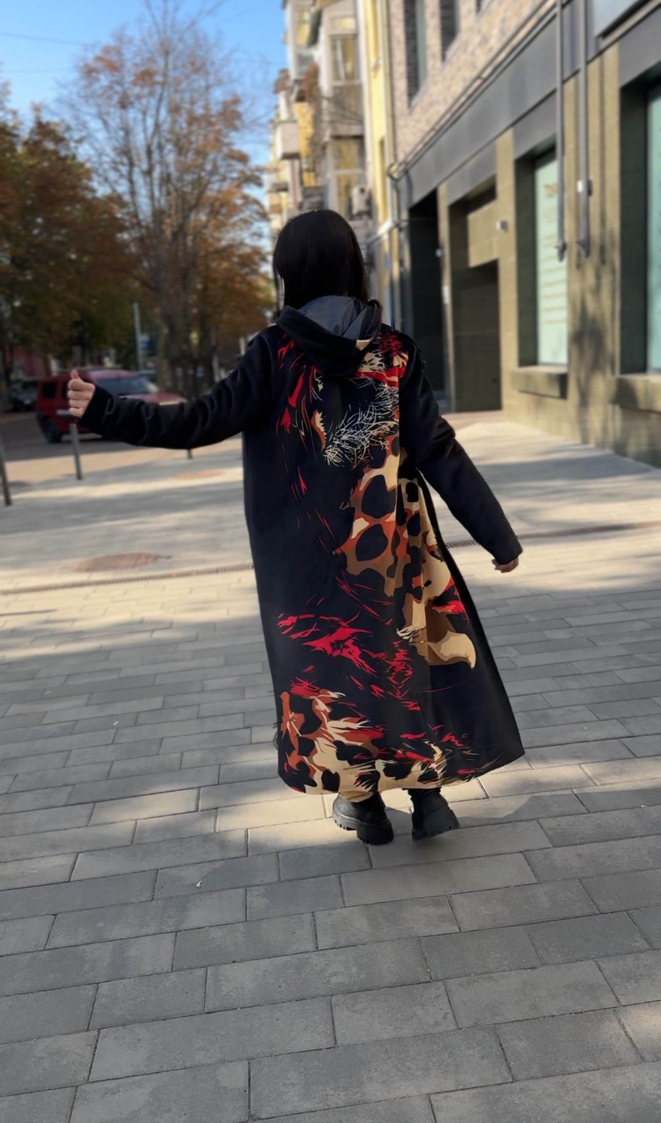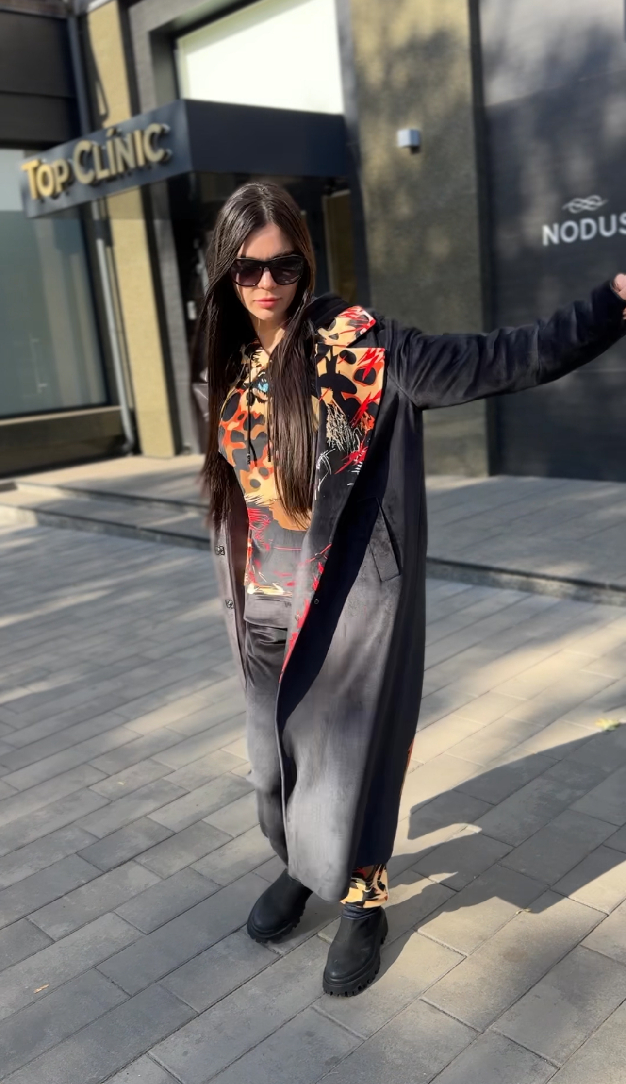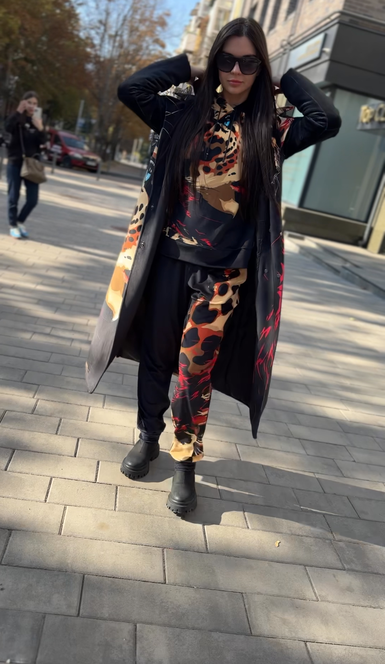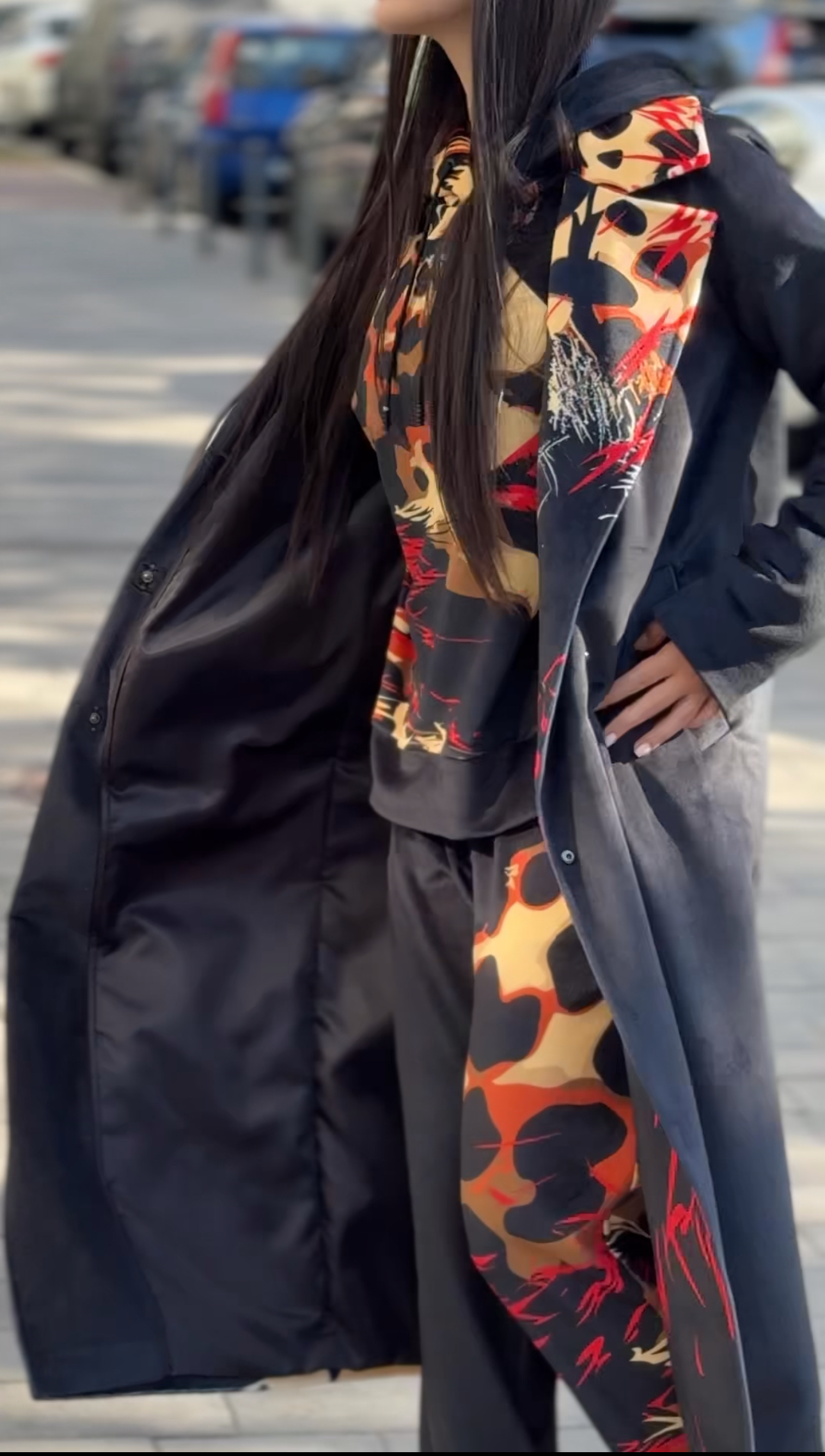Жіноче велюрове пальто весна/осінь, Артикул VO-44, чорне з леопардовим принтом