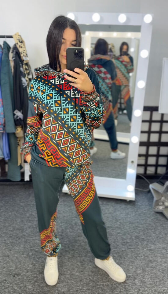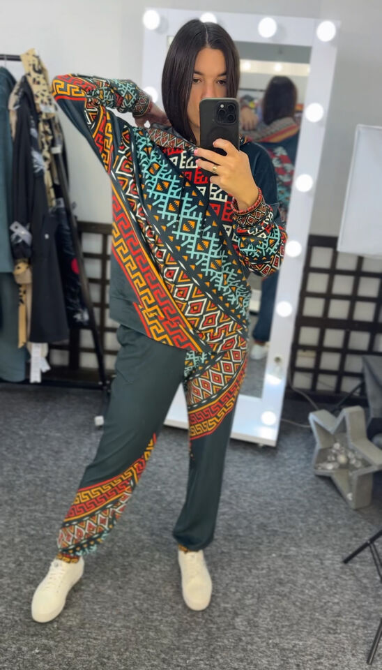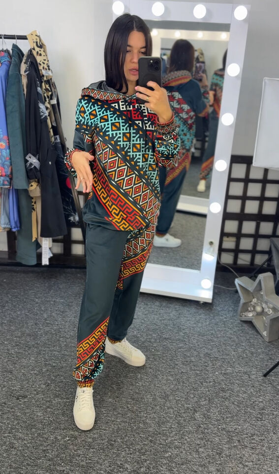 Велюровий жіночий костюм,штани джоггери весна/осінь, принт орнаменти