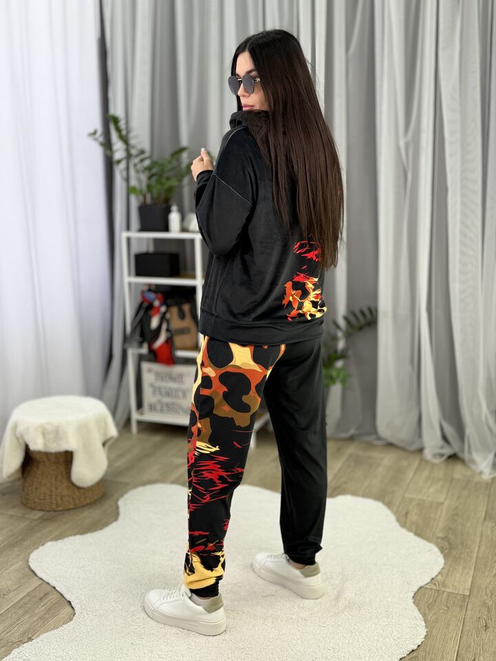 Велюровий костюм Barva Lab — ідеальний варіант для тих, хто шукає поєднання стилю, комфорту та м’якості у повсякденному одязі. Костюм підходить під категорію спортивних, але принт придає особливого, єксклюзивного відтінку! Ви можете одягати його на прогулянку, у подорож, на зустріч із друзями або відпочинку вдома. Комфортна посадка + продуманий крій = річ, яку не захочеться знімати.