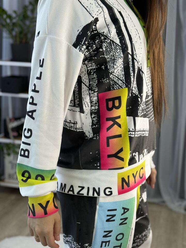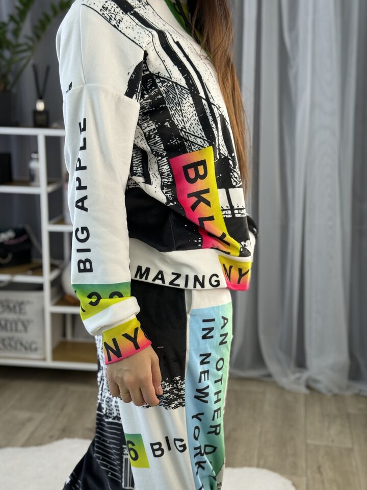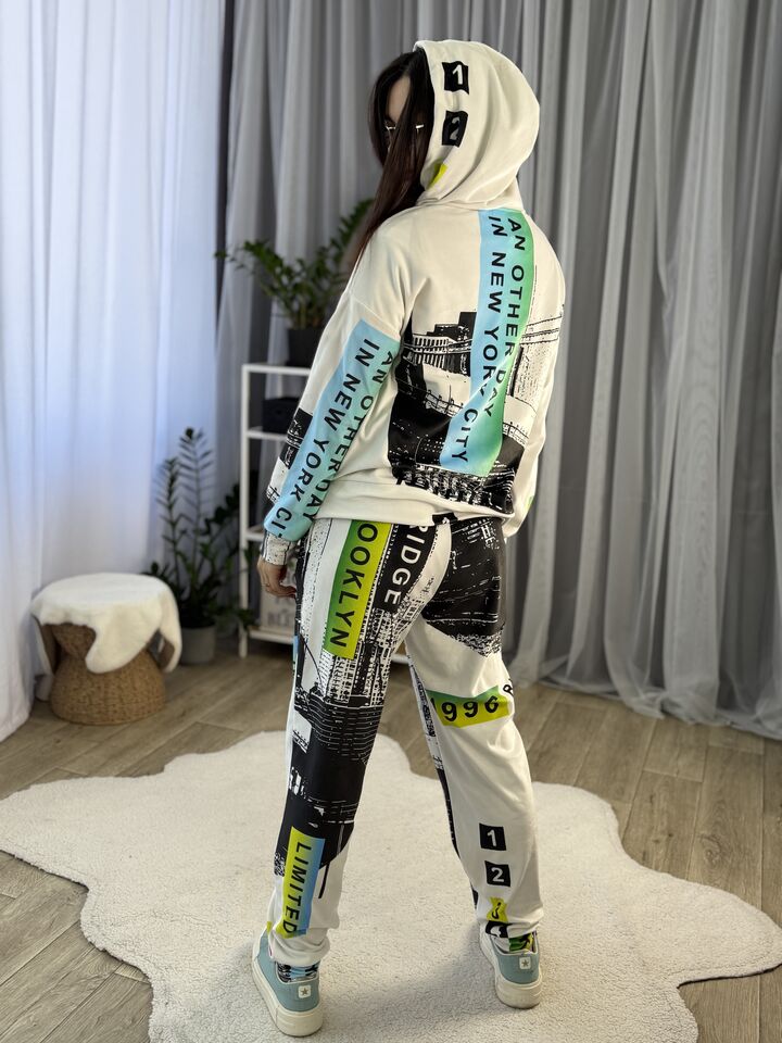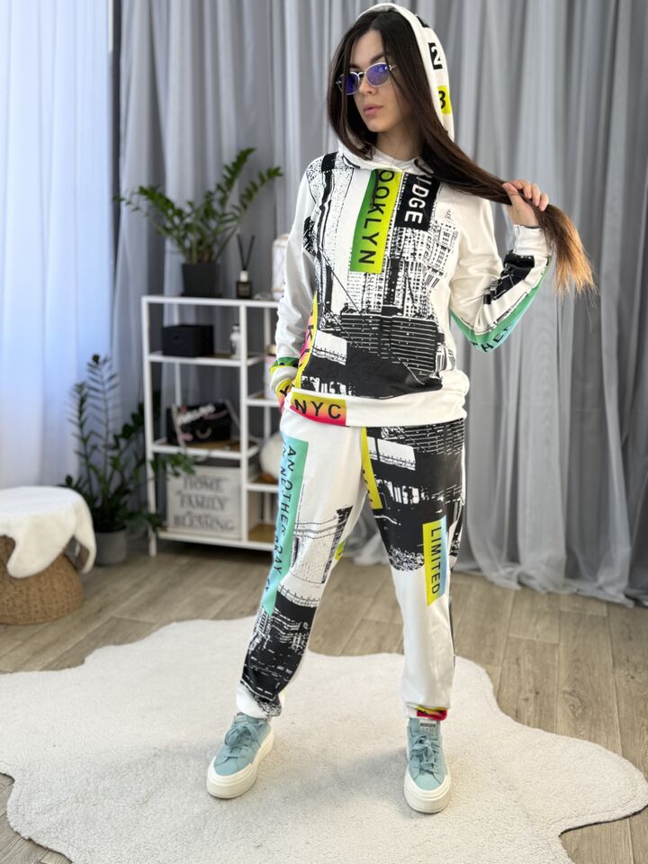 Велюровий жіночий костюм, весна/осінь, білий принт