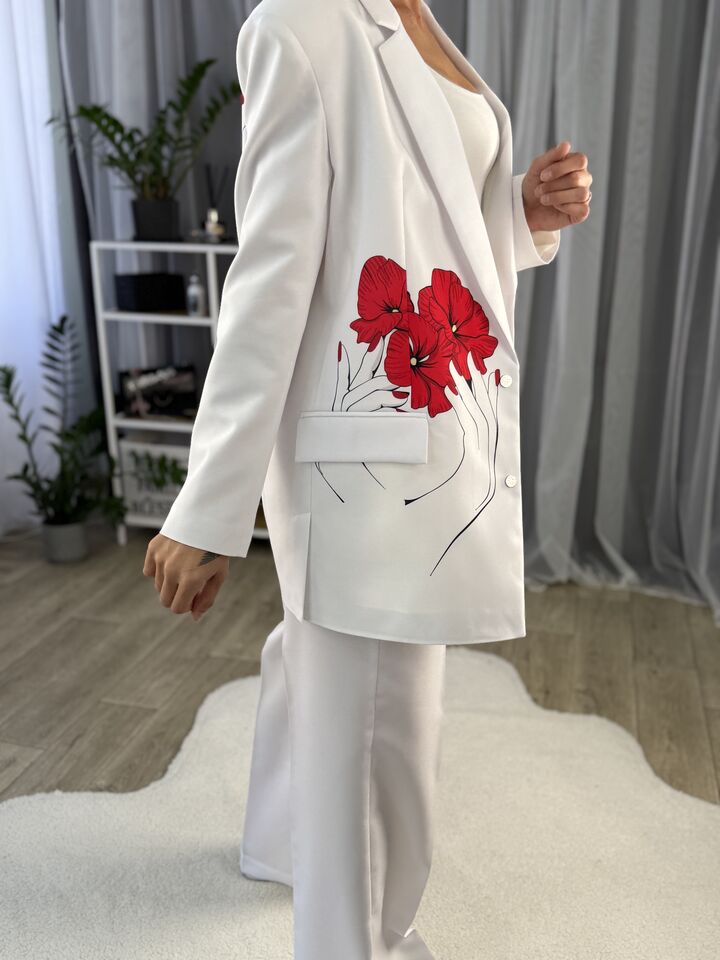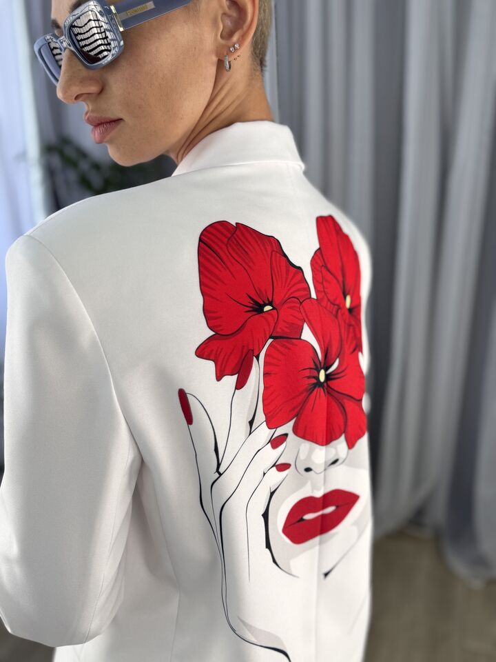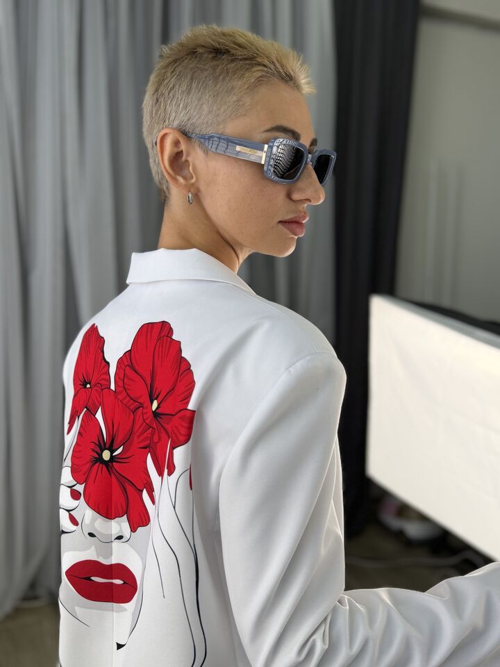 Принт — унікальний. Кожен створюємо самі, тож такого жакета ви не знайдете в масмаркеті.