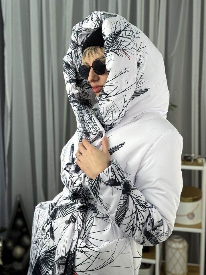 Жіноча куртка – ковдра, зимова із об’ємним капюшоном