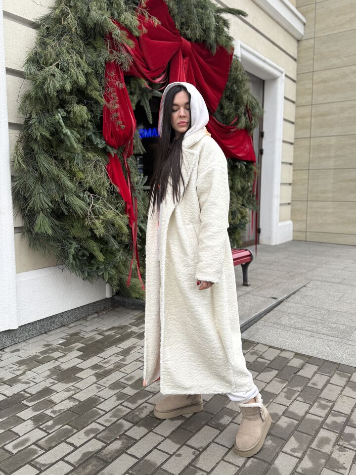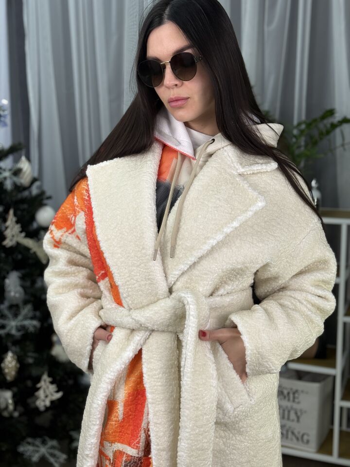 • Матеріал: хутро тедді • Сезон: єврозима (комфорт до −10°C) • Утеплювач: слімтекс 100 г/м² • Застібка: пасок • Капюшон: немає • Посадка: прямого крою • Довжина: 128 см (корегуємо під зріст) • Догляд: прання 30°