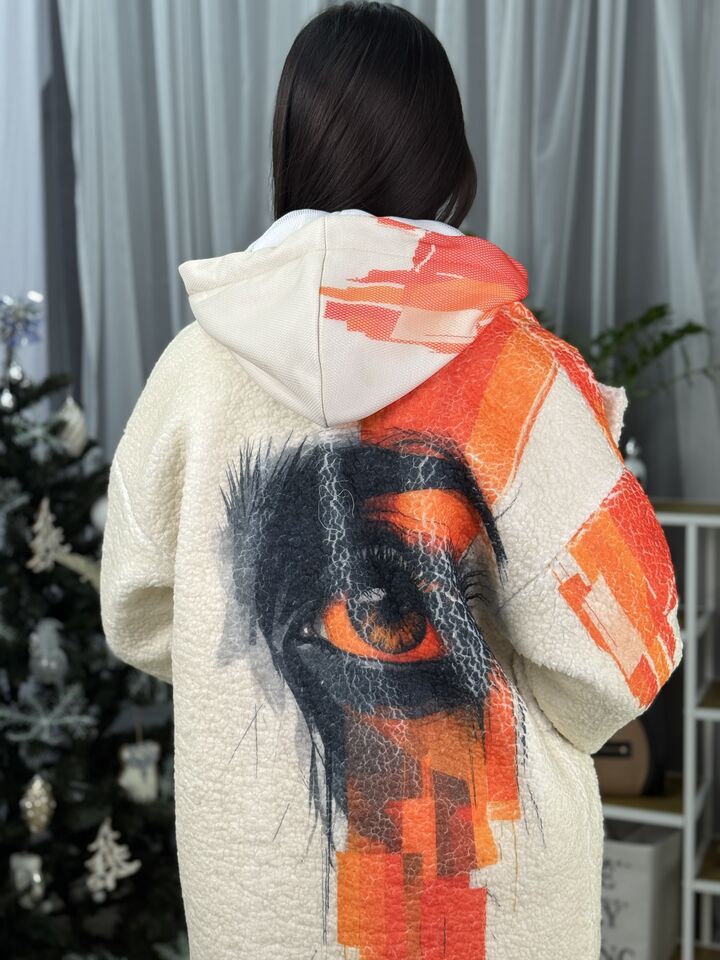 Пальто із хутра тедді Barva Lab — це нове рішення для зимового сезону. Дарує відчуття комфорту й упевненості навіть у холодні дні. Яскравий авторський принт додає драйву, ніби каже: “будь собою, навіть коли сірість навколо”. Твоя творча натура вже в захваті від побаченого.