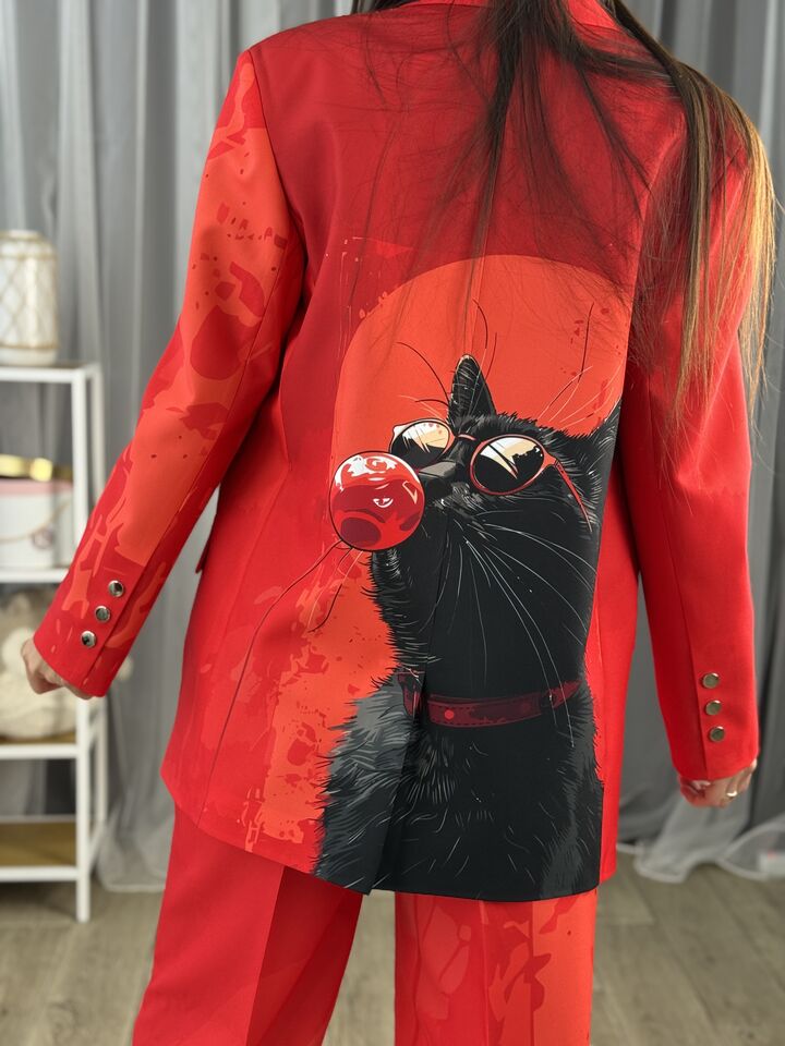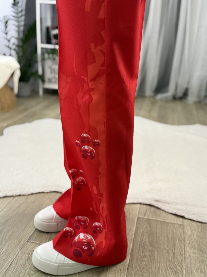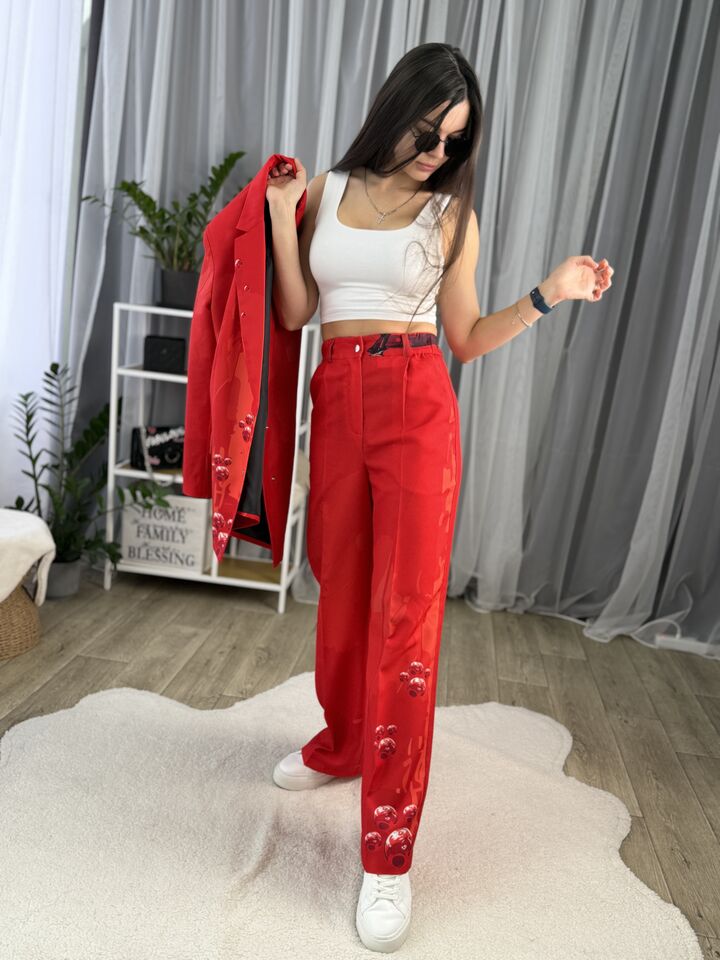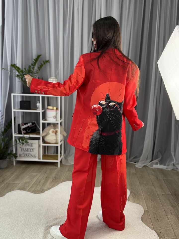 Жіночий брючний костюм червоний з котом
