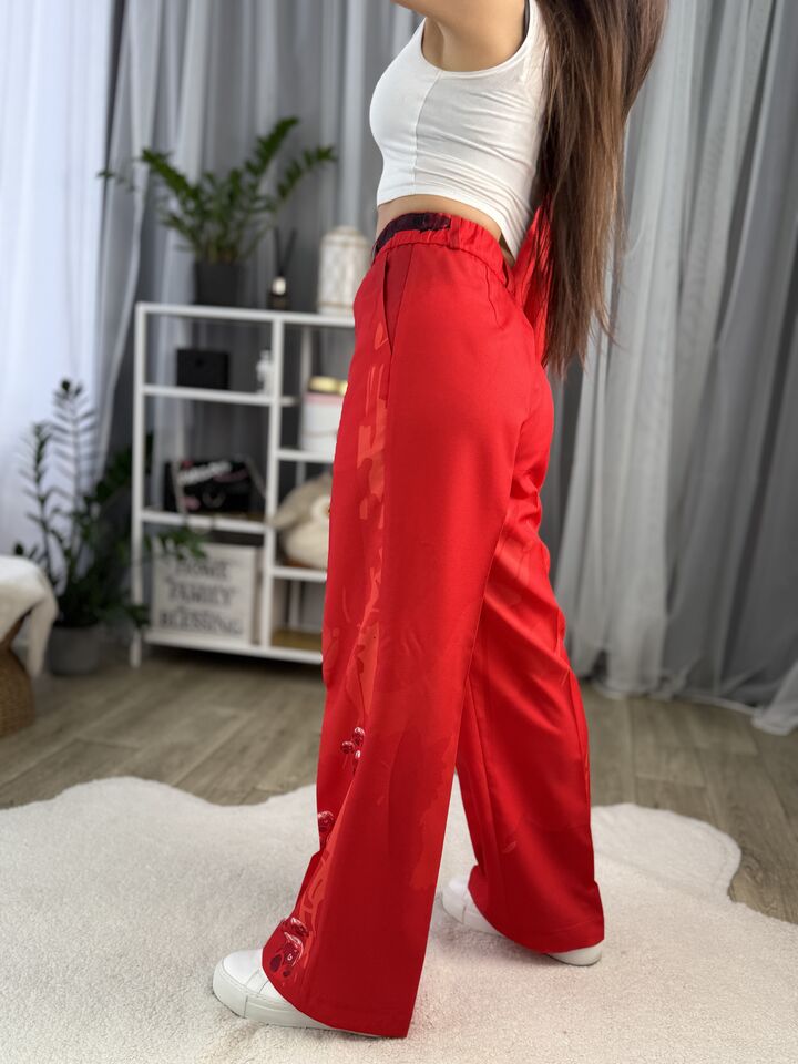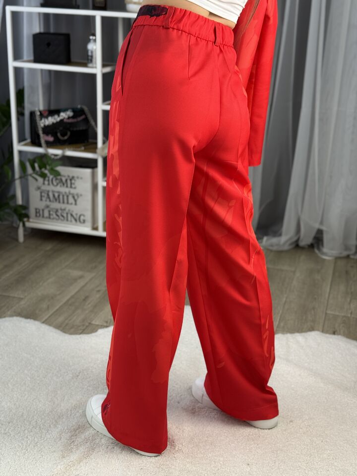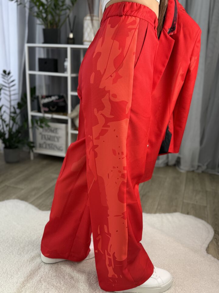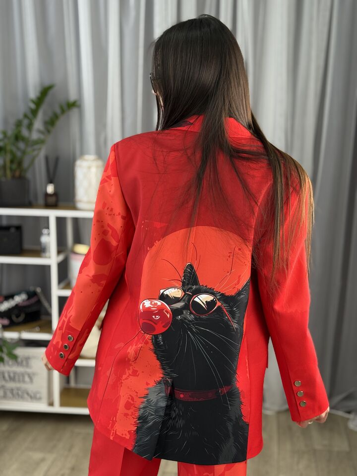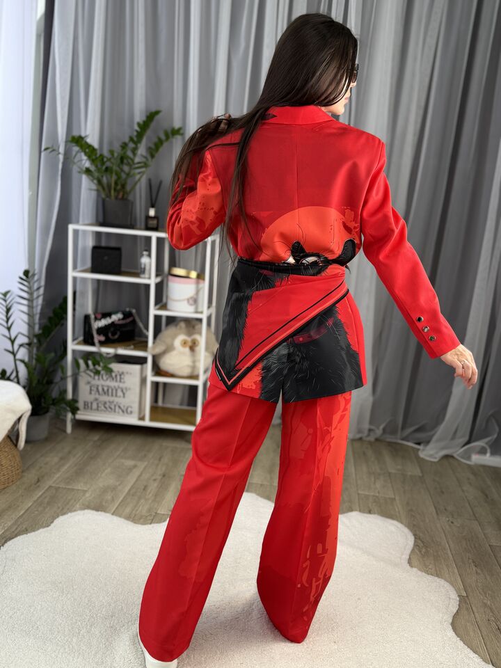 Жіночий брючний костюм червоний з котом