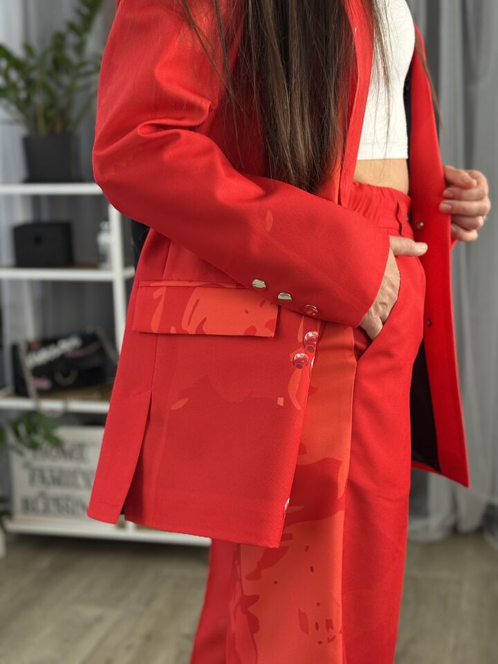 Цей костюм — це впевненість, стиль і унікальність в одному образі. Ідеальний для сучасної жінки, яка знає, чого хоче.