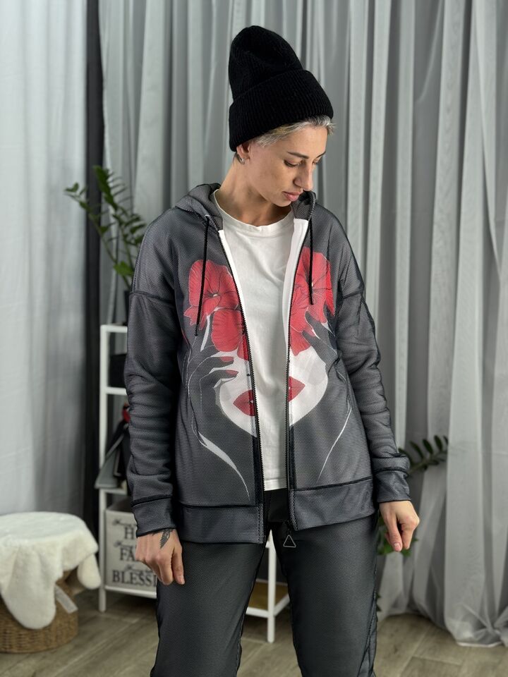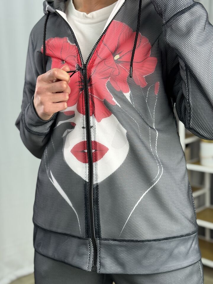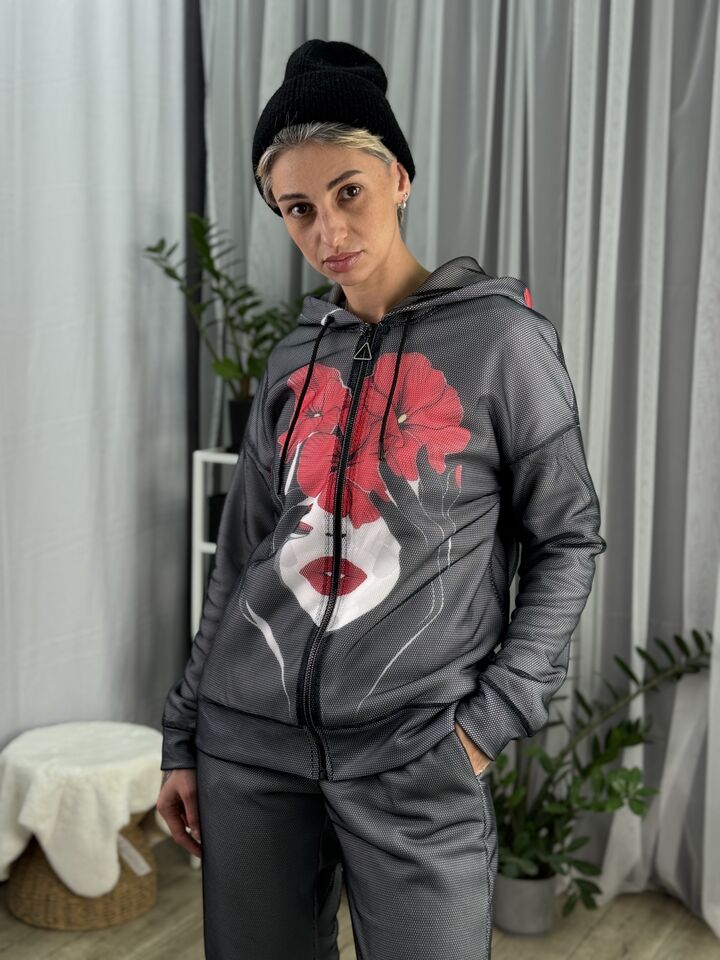 Жіночий флісовий костюм на блискавці Barva Lab – ідеальний вибір для тих, хто цінує зручність у повсякденному житті, але не готовий поступитися стилем, він поєднує у собі комфорт, свободу рухів і теплоту, а унікальний принт, в будь-якому випадку, наділить тебе особливою увагою від оточуючих!