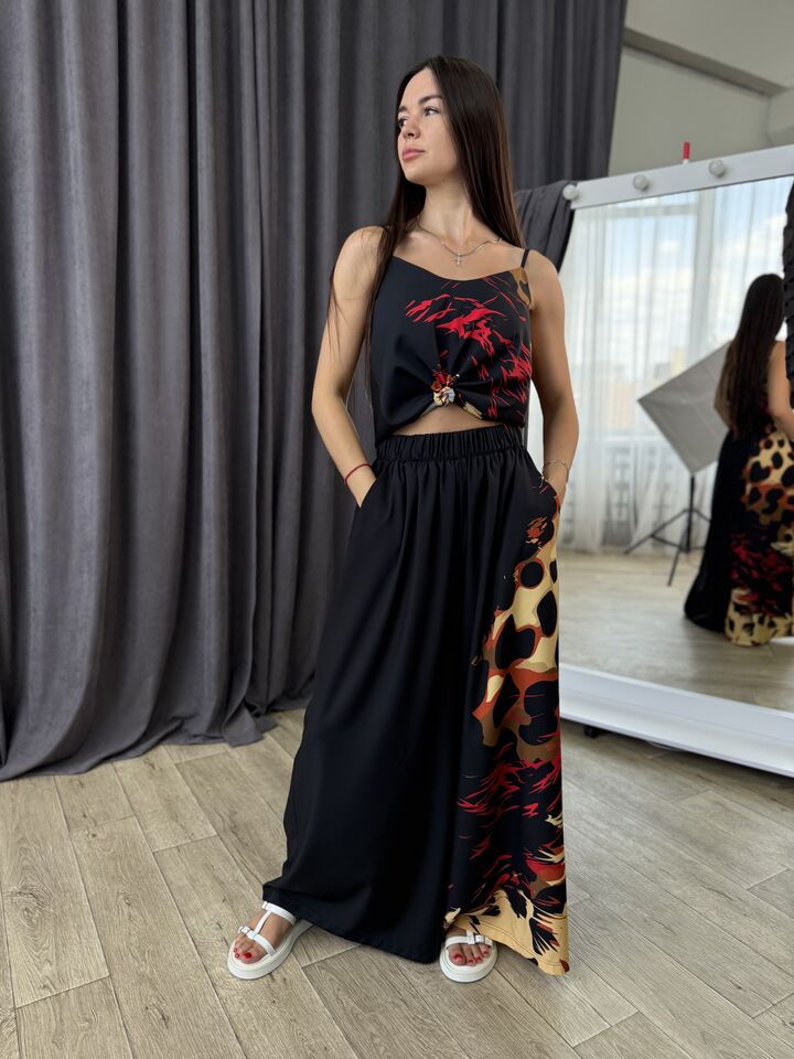Мабуть ти шукаєш: костюм на вихід, нарядний костюм, пляжний одяг, жіночий комплект, комплект-трійка, брюки з кишенями, майка на бретелях, сорочка з поясом, комплект із віскози, легкий літній комплект, дизайнерський одяг, модний жіночий костюм, універсальний образ
