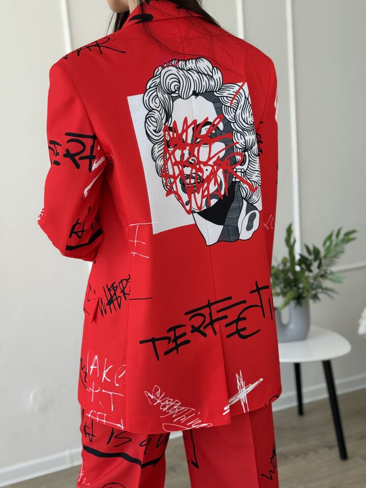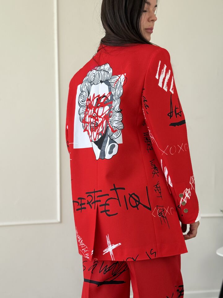 Принт — унікальний. Кожен створюємо самі, тож такого жакета ви не знайдете в масмаркеті.