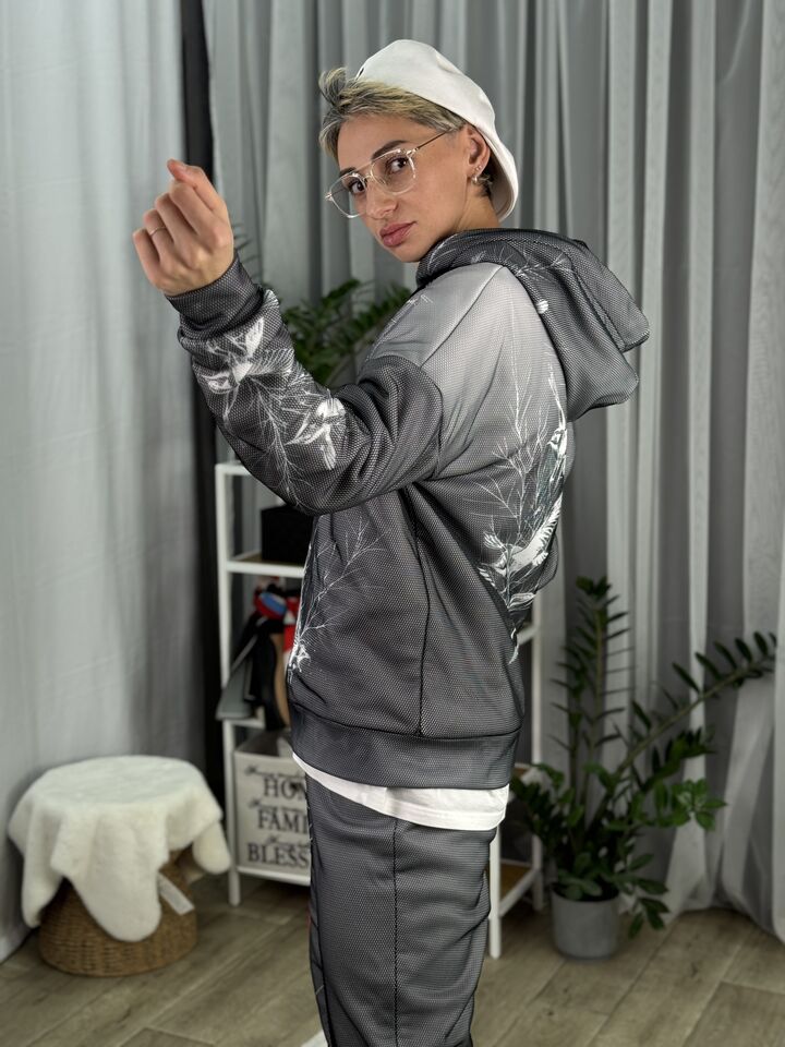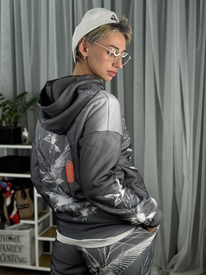 Жіночий флісовий костюм Barva Lab – ідеальний вибір для тих, хто цінує зручність у повсякденному житті, але не готовий поступитися стилем, він поєднує у собі комфорт, свободу рухів і теплоту, а унікальний принт, в будь-якому випадку, наділить тебе особливою увагою від оточуючих!