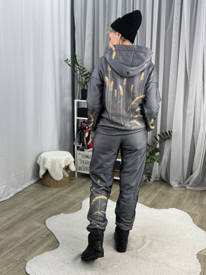 Жіночий флісовий костюм Barva Lab – ідеальний вибір для тих, хто цінує зручність у повсякденному житті, але не готовий поступитися стилем, він поєднує у собі комфорт, свободу рухів і теплоту, а унікальний принт, в будь-якому випадку, наділить тебе особливою увагою від оточуючих!