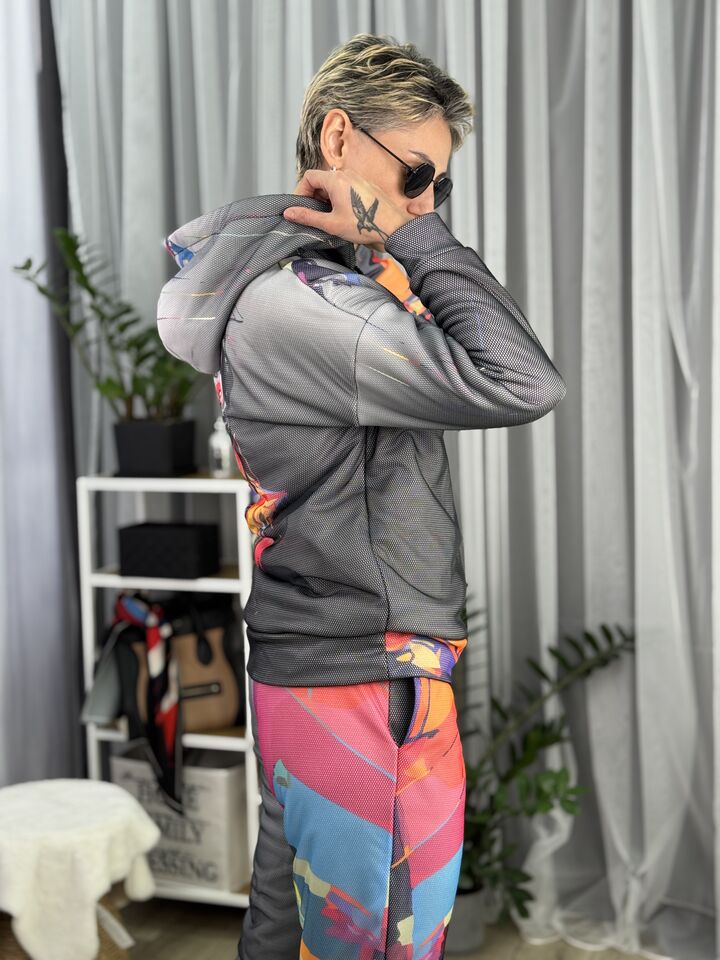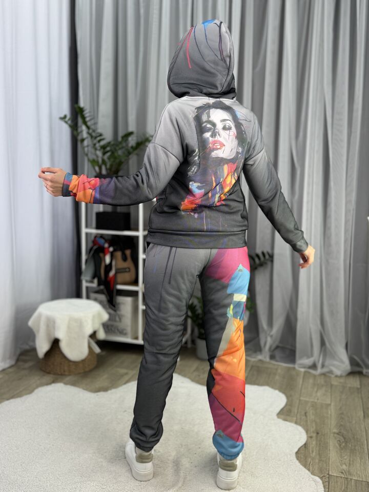 Жіночий флісовий костюм Barva Lab – ідеальний вибір для тих, хто цінує зручність у повсякденному житті, але не готовий поступитися стилем, він поєднує у собі комфорт, свободу рухів і теплоту, а унікальний принт, в будь-якому випадку, наділить тебе особливою увагою від оточуючих!