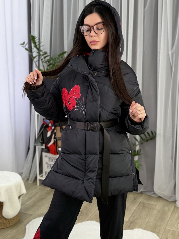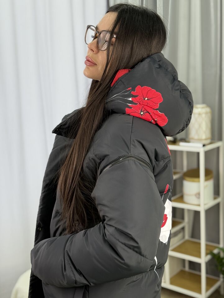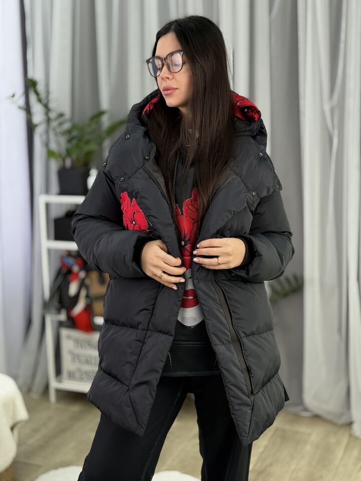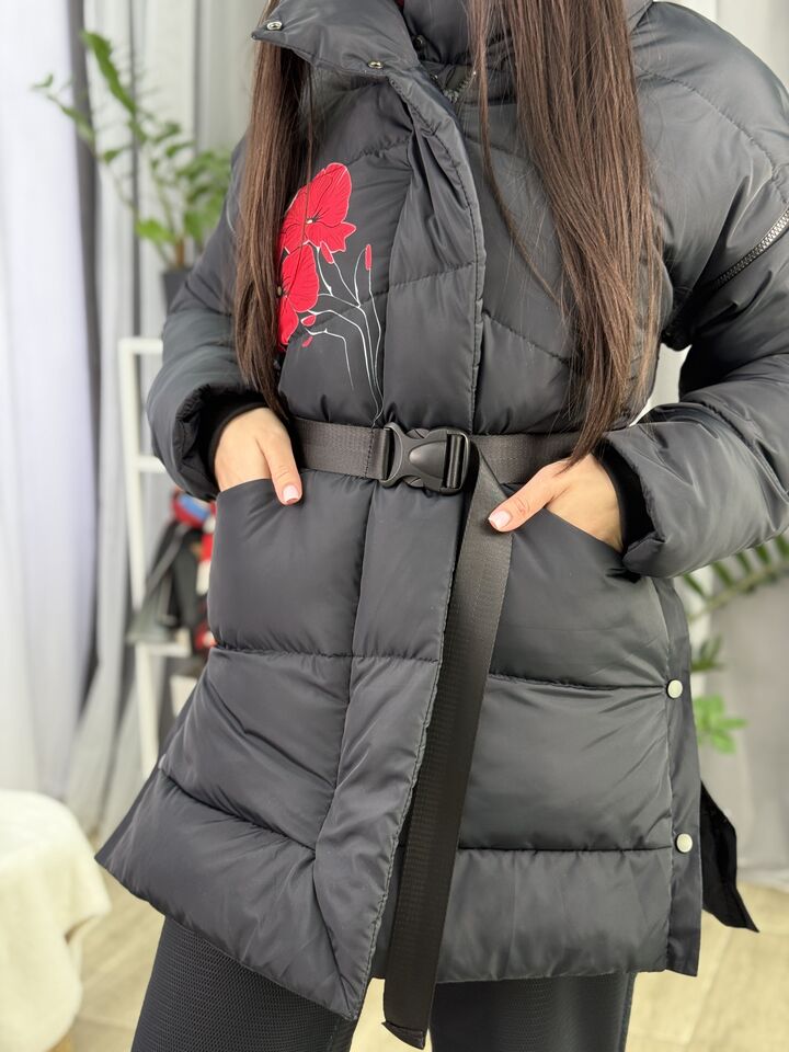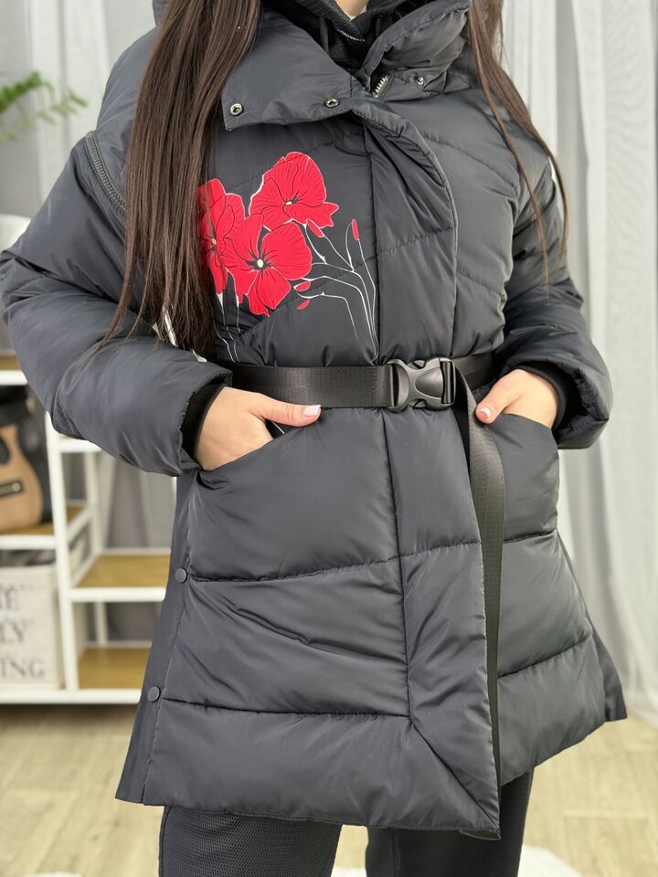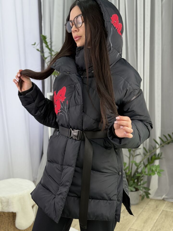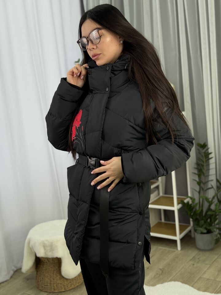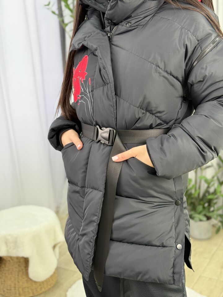 Прямий крій, зручний для руху та багатошарових образів, застібається на блискавку + планка з кнопками, рукави відстібуються на блискавці — легко трансформується в жилет, приховані манжети — для додаткового захисту від вітру, вшитий капюшон — теплий і зручний, розрізи з боків на кнопках — для свободи кроку та стильного вигляду, функціональні кишені з обох боків, пояс у комплекті — для підкреслення талії, довжина виробу: 80 см, довжина рукава від горловини: 77 см, температурний режим: до -20°C