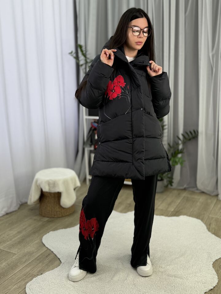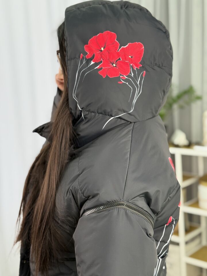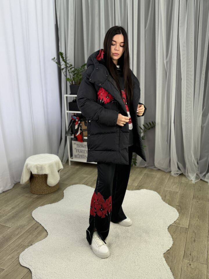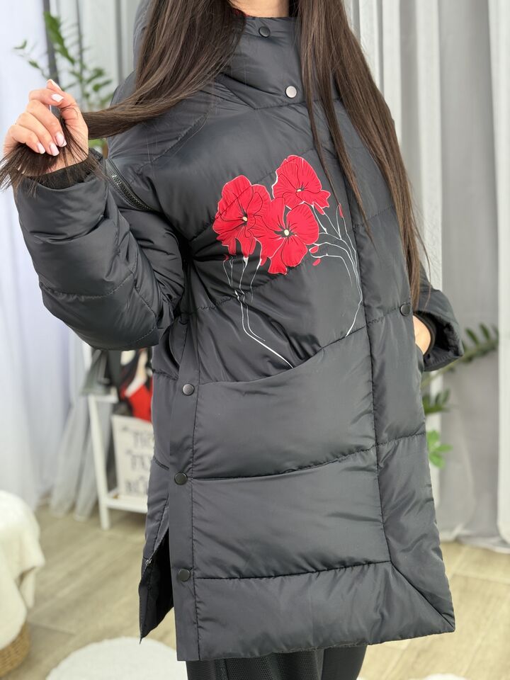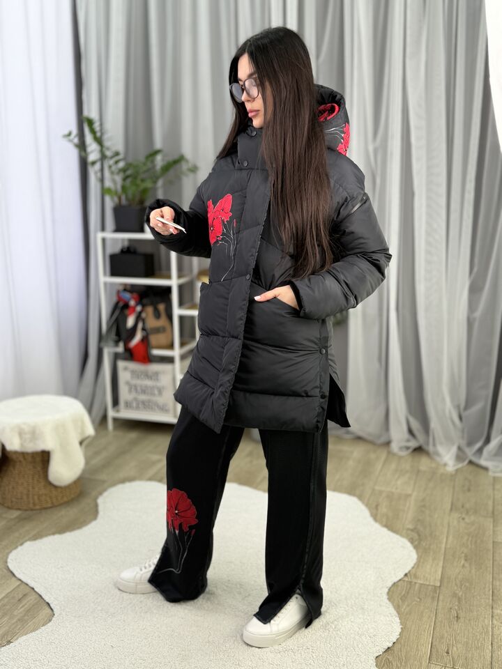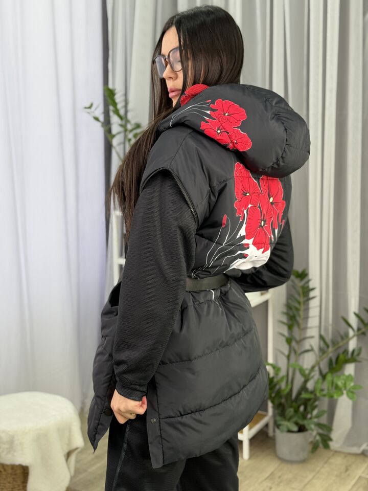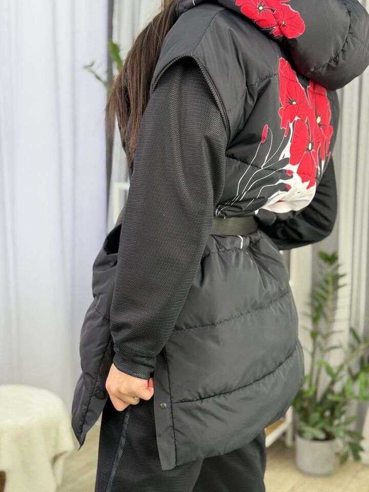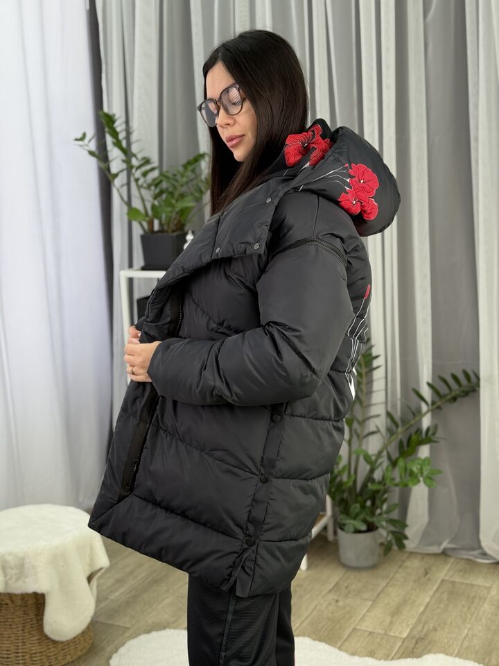 Прямий крій, зручний для руху та багатошарових образів, застібається на блискавку + планка з кнопками, рукави відстібуються на блискавці — легко трансформується в жилет, приховані манжети — для додаткового захисту від вітру, вшитий капюшон — теплий і зручний, розрізи з боків на кнопках — для свободи кроку та стильного вигляду, функціональні кишені з обох боків, пояс у комплекті — для підкреслення талії, довжина виробу: 80 см, довжина рукава від горловини: 77 см, температурний режим: до -20°C