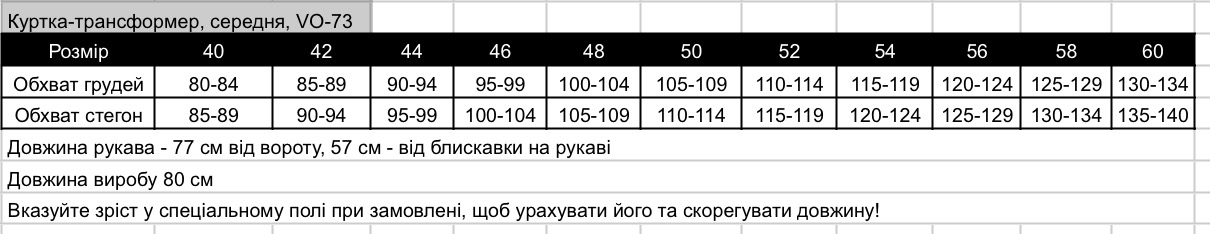 Ми виробники, працюємо під замовлення, відшиваємо будь-який розмір, корегуємо довжину під зріст! Після оформлення замовлення через кошик, наш менедженр зв’яжеться з Вами для  його завершення та уточнення деталей!