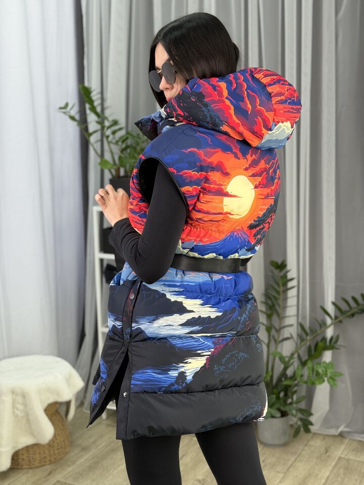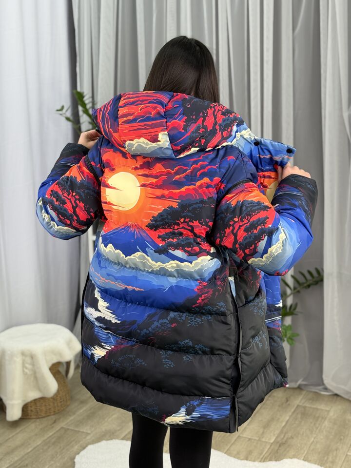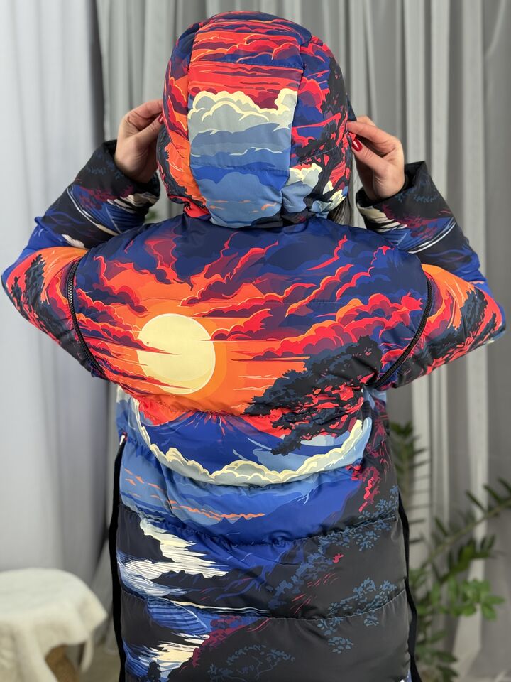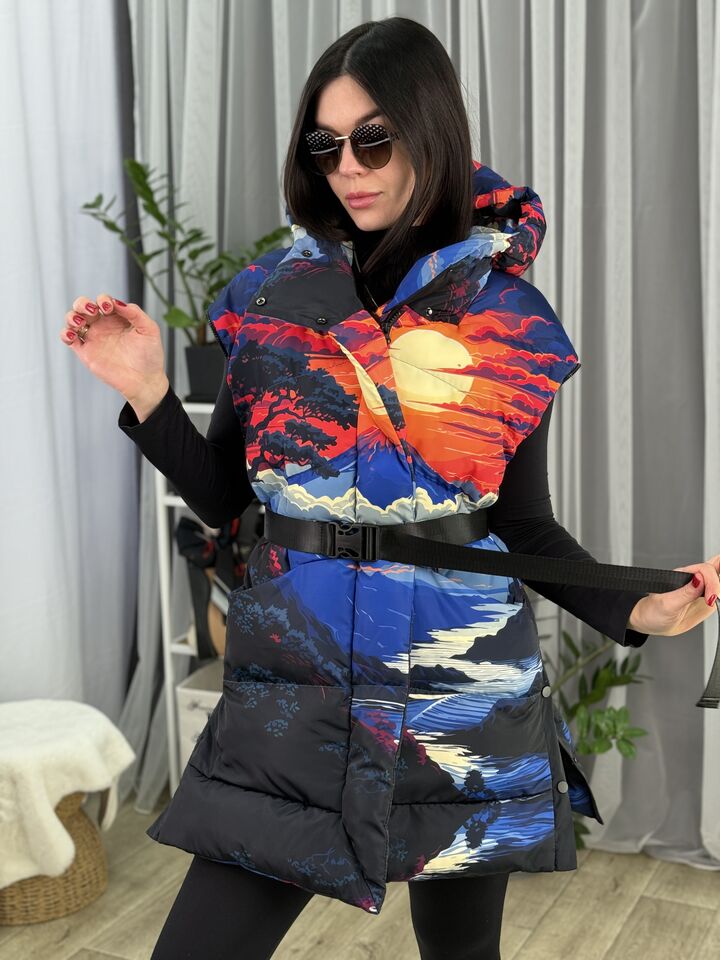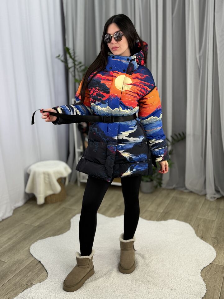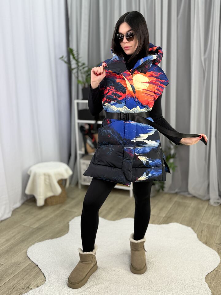 Прямий крій, зручний для руху та багатошарових образів, застібається на блискавку + планка з кнопками, рукави відстібуються на блискавці — легко трансформується в жилет, приховані манжети — для додаткового захисту від вітру, вшитий капюшон — теплий і зручний, розрізи з боків на кнопках — для свободи кроку та стильного вигляду, функціональні кишені з обох боків, пояс у комплекті — для підкреслення талії, довжина виробу: 80 см, довжина рукава від горловини: 77 см, температурний режим: до -20°C