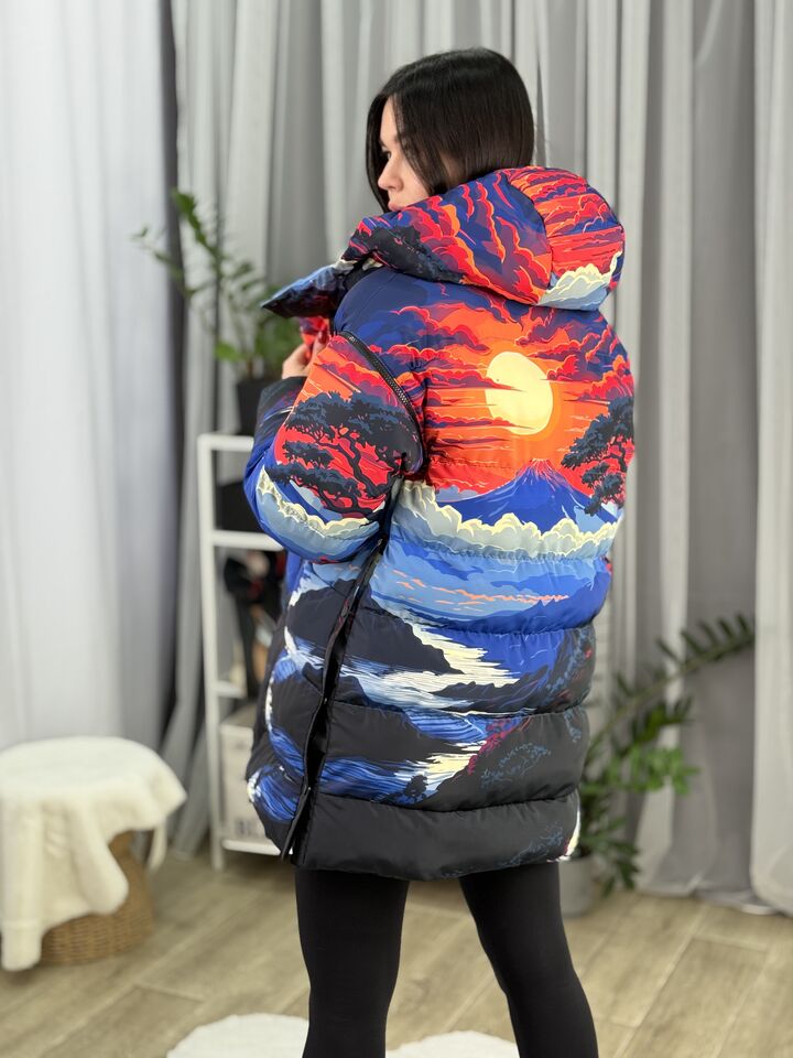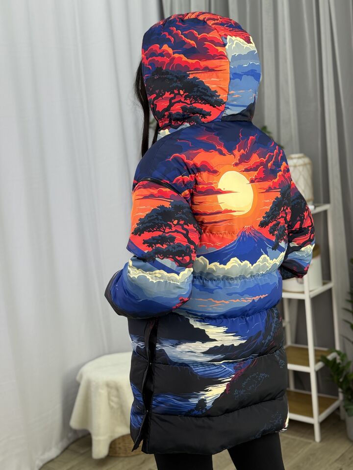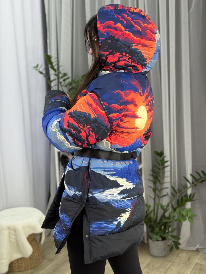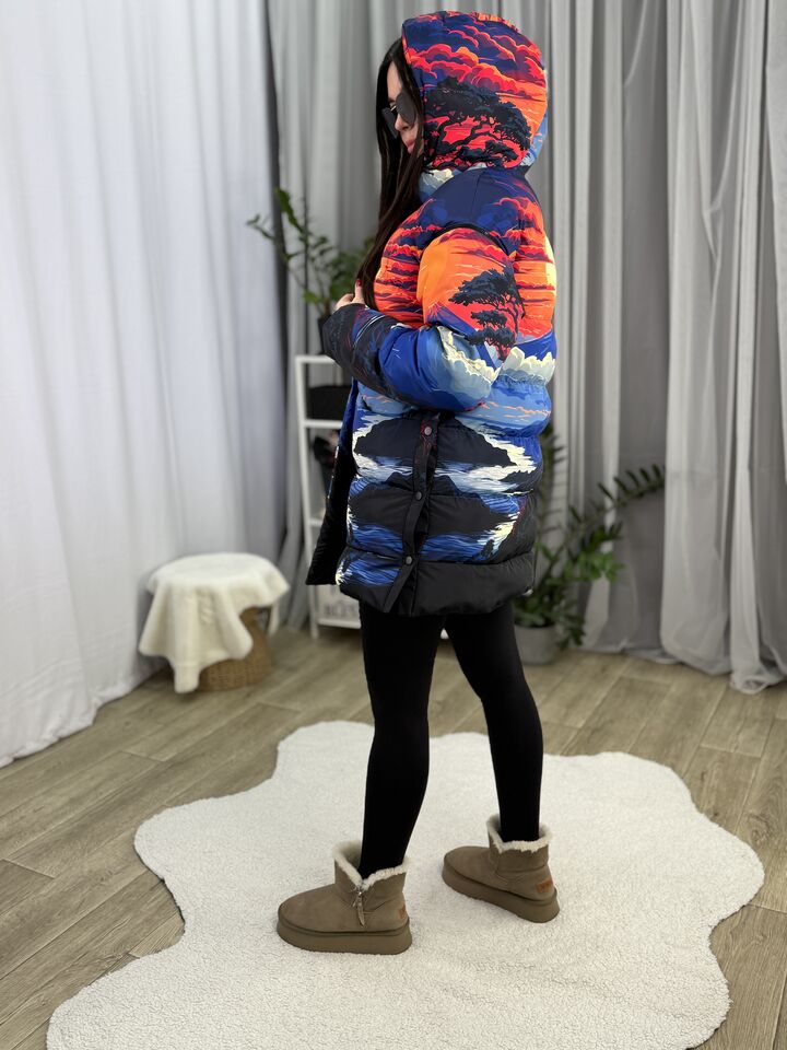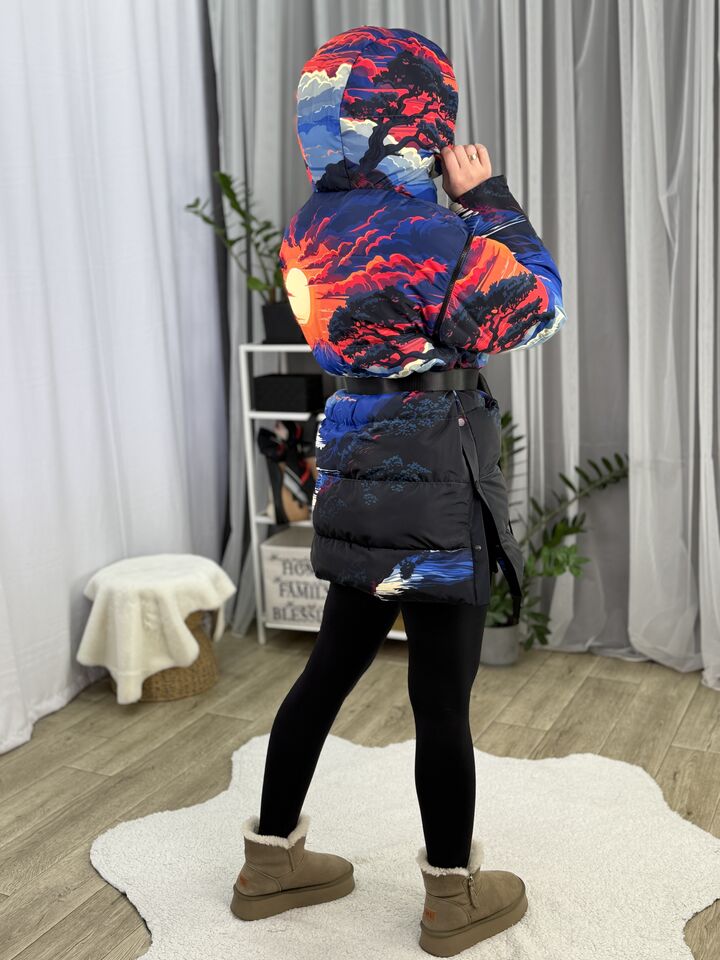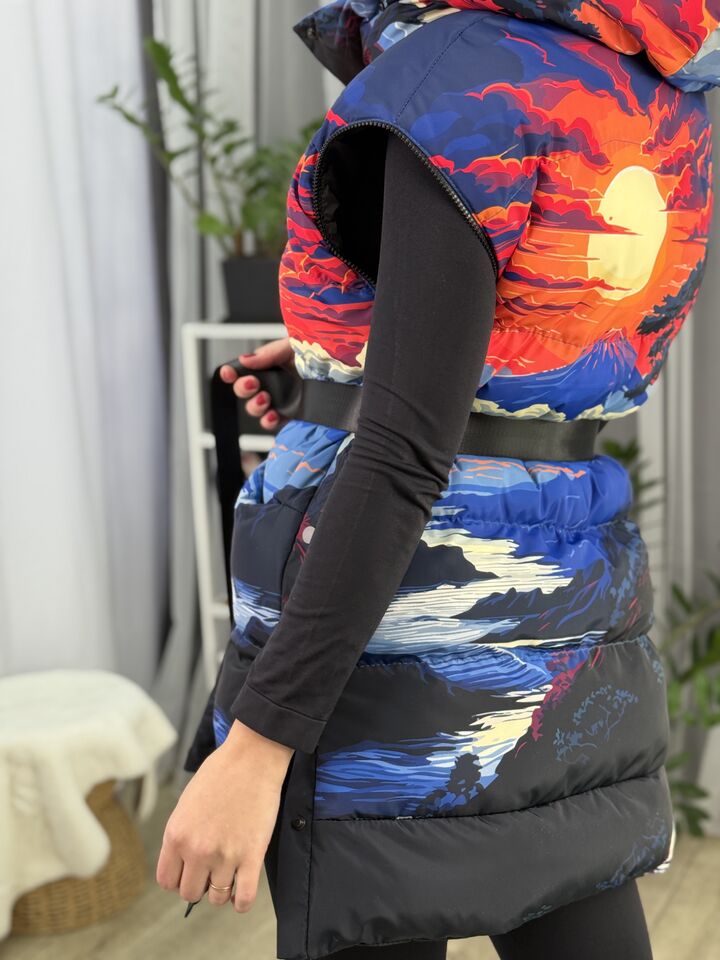 Прямий крій, зручний для руху та багатошарових образів, застібається на блискавку + планка з кнопками, рукави відстібуються на блискавці — легко трансформується в жилет, приховані манжети — для додаткового захисту від вітру, вшитий капюшон — теплий і зручний, розрізи з боків на кнопках — для свободи кроку та стильного вигляду, функціональні кишені з обох боків, пояс у комплекті — для підкреслення талії, довжина виробу: 80 см, довжина рукава від горловини: 77 см, температурний режим: до -20°C