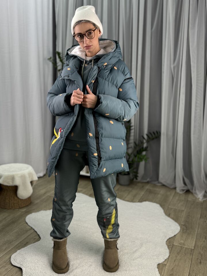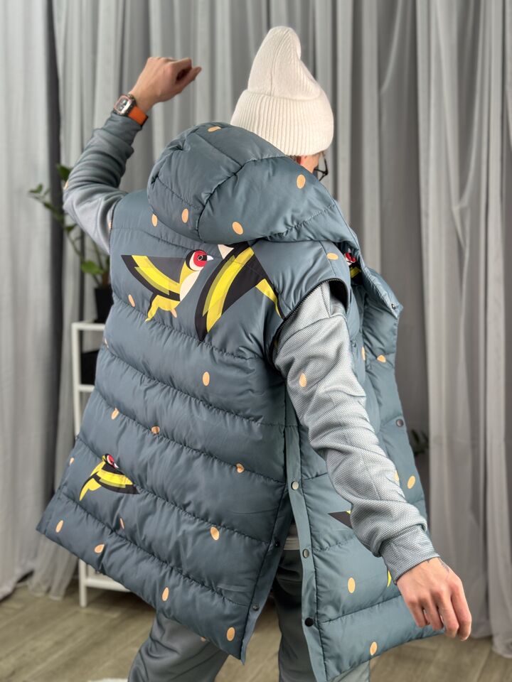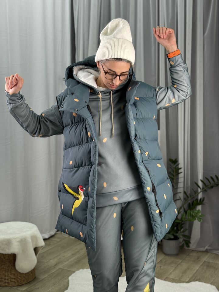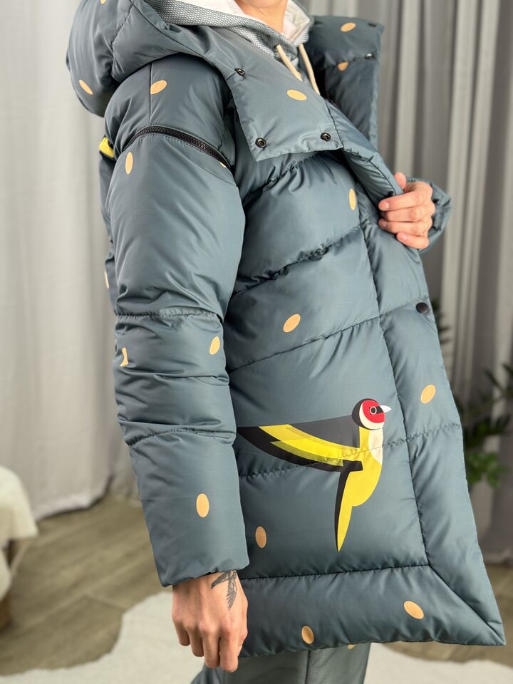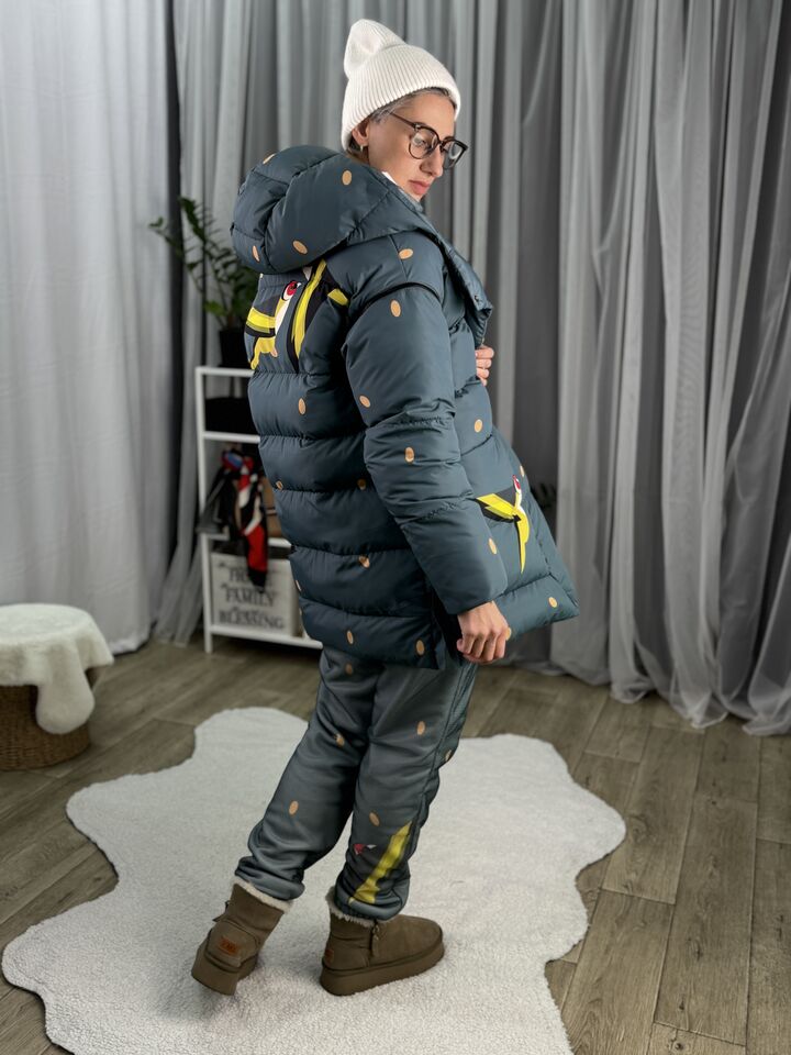 Прямий крій, зручний для руху та багатошарових образів, застібається на блискавку + планка з кнопками, рукави відстібуються на блискавці — легко трансформується в жилет, приховані манжети — для додаткового захисту від вітру, вшитий капюшон — теплий і зручний, розрізи з боків на кнопках — для свободи кроку та стильного вигляду, функціональні кишені з обох боків, пояс у комплекті — для підкреслення талії, довжина виробу: 80 см, довжина рукава від горловини: 77 см, температурний режим: до -20°C